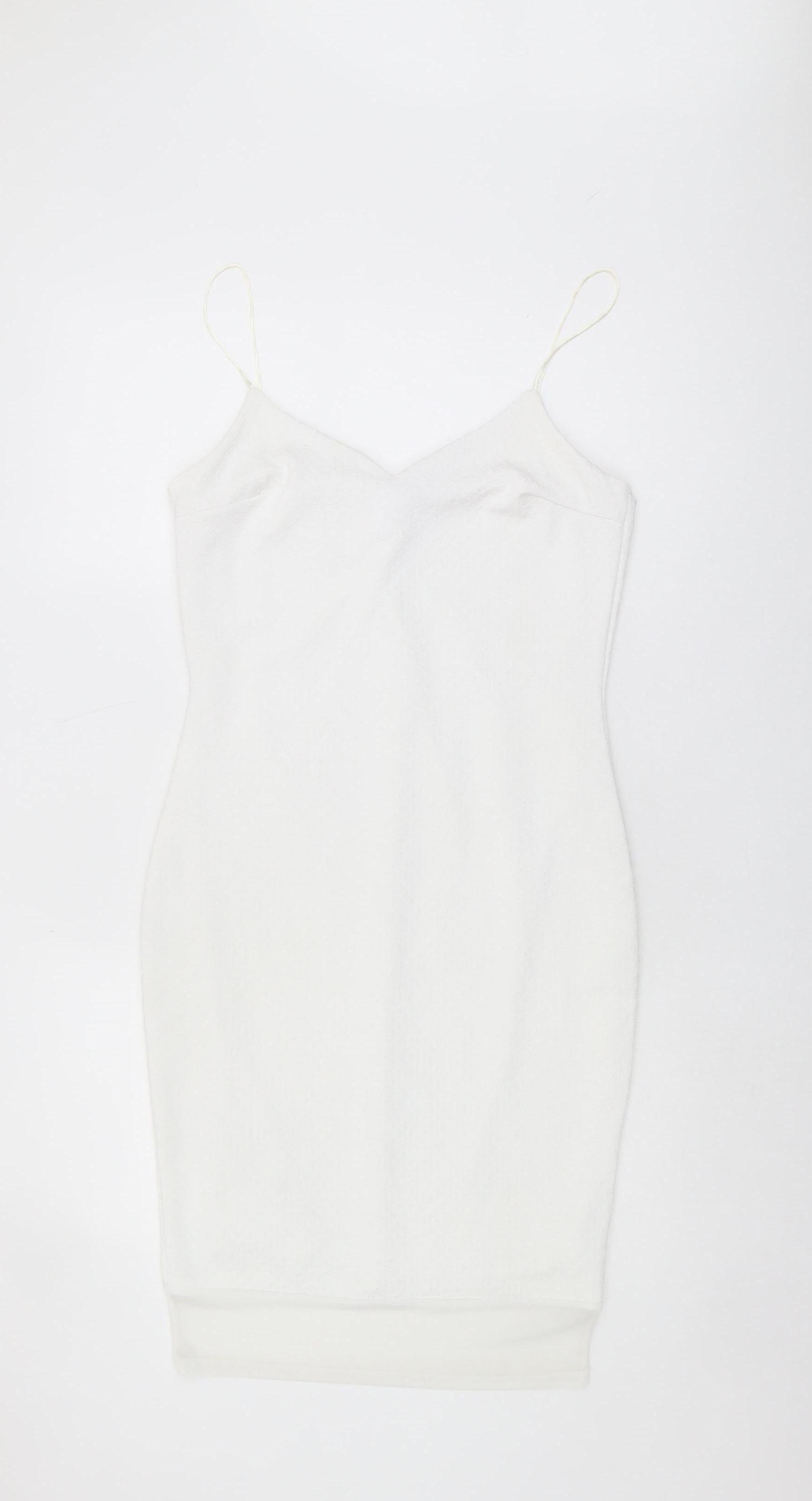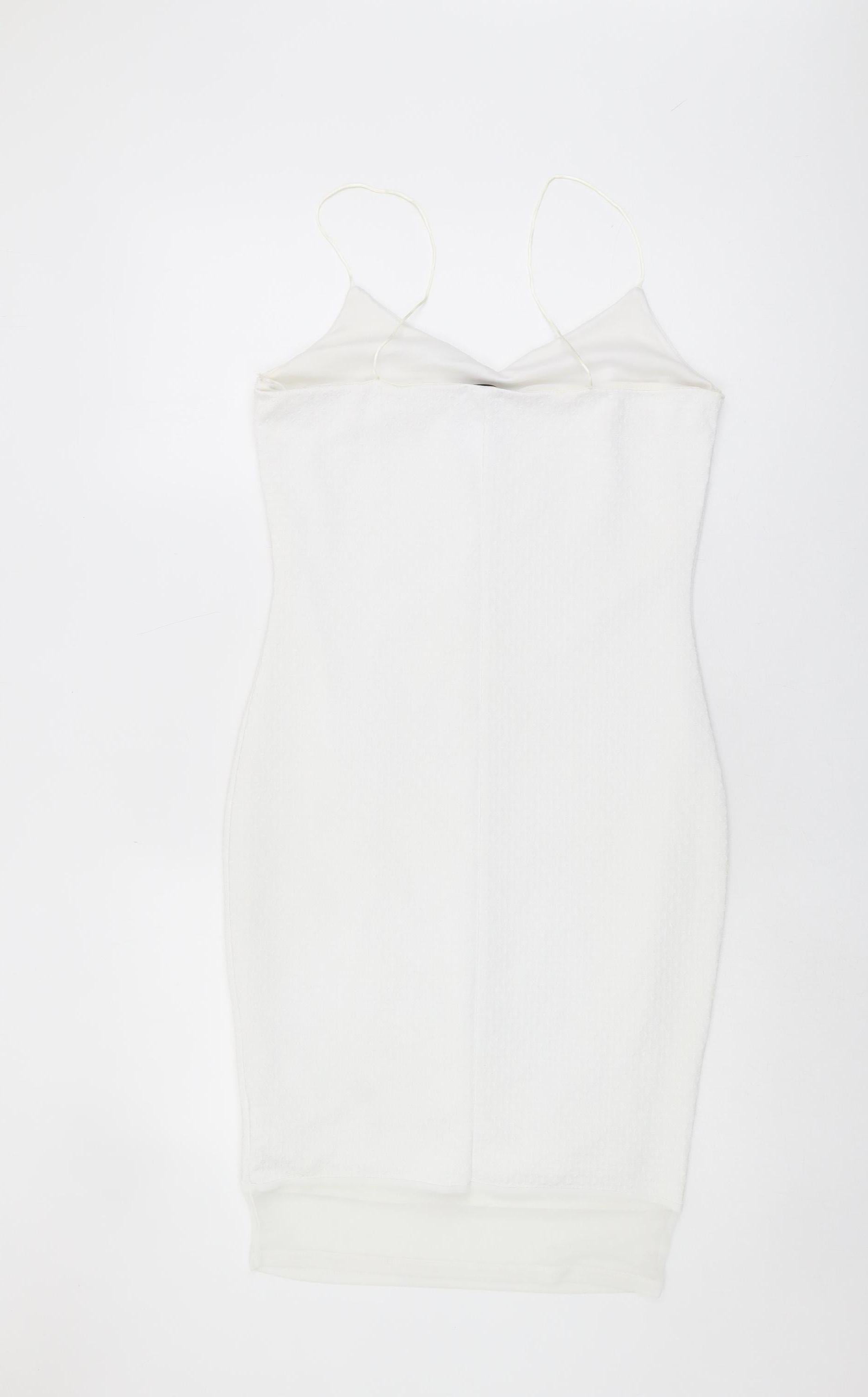 Elevate your wardrobe with this classic River Island slip dress, a perfect choice for versatile styling and effortless elegance. Tailored to fit a UK size 12, it offers a flattering silhouette that hugs in all the right places. Crafted from quality polyester and elastane, its silky-smooth texture ensures both comfort and a touch of sophistication, making it a must-have for any modern woman's collection. Its minimalist design makes it ideal for both casual outings and dressier occasions, offering endless styling possibilities. Wear it as is during warmer months or layer with a tailored jacket when the temperature drops. Experience the versatility and timeless appeal of the simple yet elegant slip dress in a pristine white hue. It's a fantastic addition to your collection that assures both style and comfort.