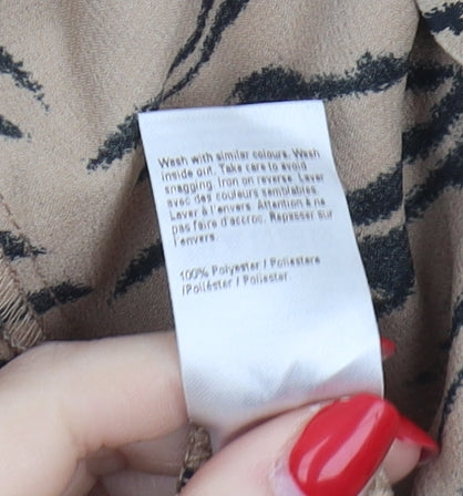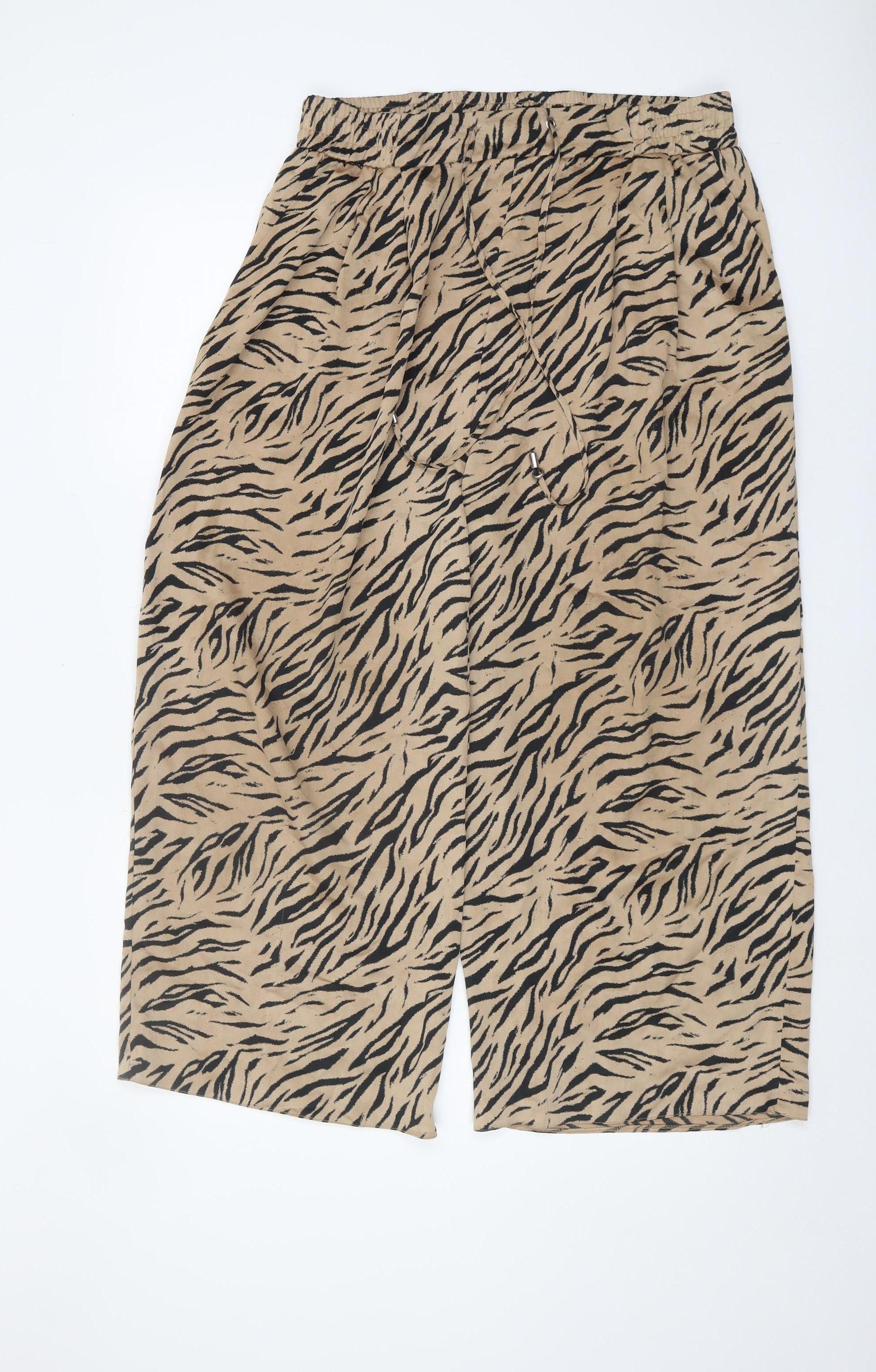 Step out in style with these striking River Island trousers, perfect for the fashion-forward woman. Designed in a trendy beige animal print, these trousers are crafted from 100% polyester, ensuring a lightweight and comfortable fit. The elastic waist feature provides added comfort and ease of wear, making them ideal for everyday outings or casual gatherings. Designed for the regular fit, these trousers cater to comfort without compromising on style. Whether you're off to a casual meet with friends or a low-key evening event, these trousers make the perfect choice. The animal print adds a bold statement to your ensemble, allowing you to express your unique sense of style with confidence. With their excellent condition, these trousers promise great value and long-lasting wear. Don't miss out on adding this chic pair from River Island to your wardrobe, guaranteed to elevate your look effortlessly.