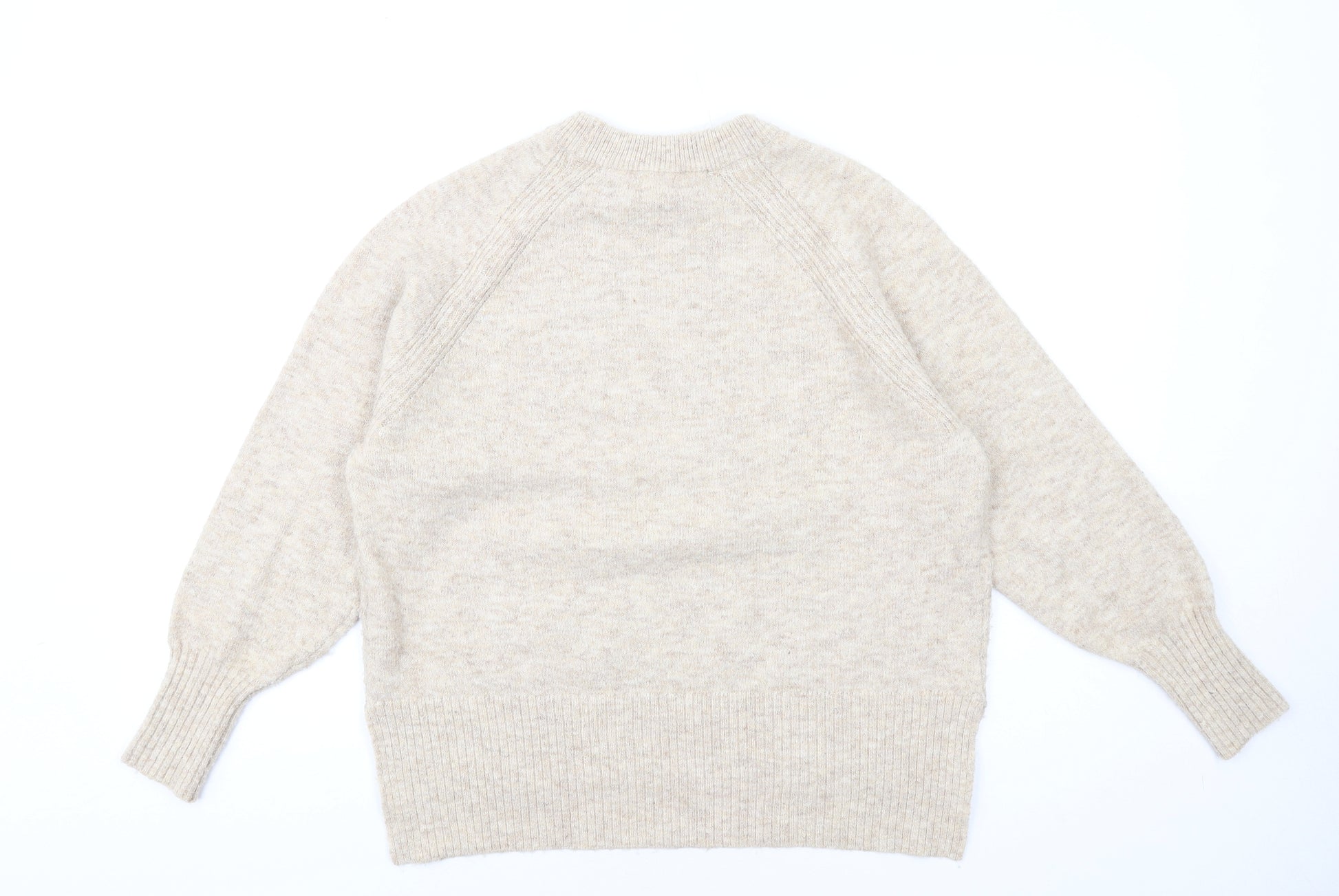 Womens Beige Crew Neck Polyester Pullover Jumper Size S