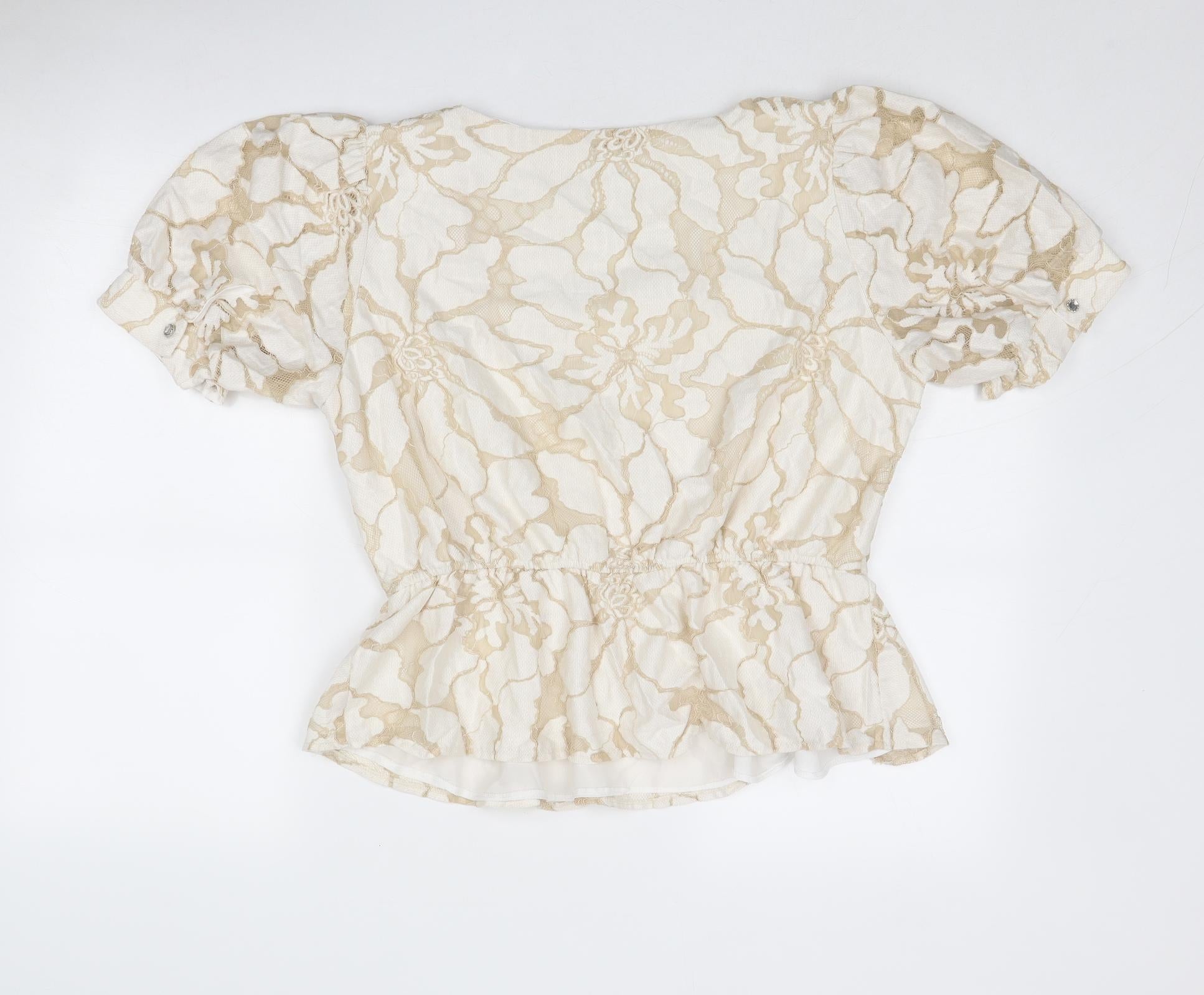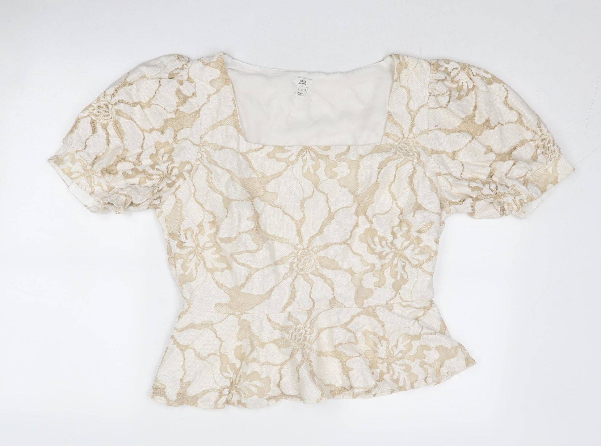 Womens Beige Floral Cotton Basic Blouse Size 16 Square Neck