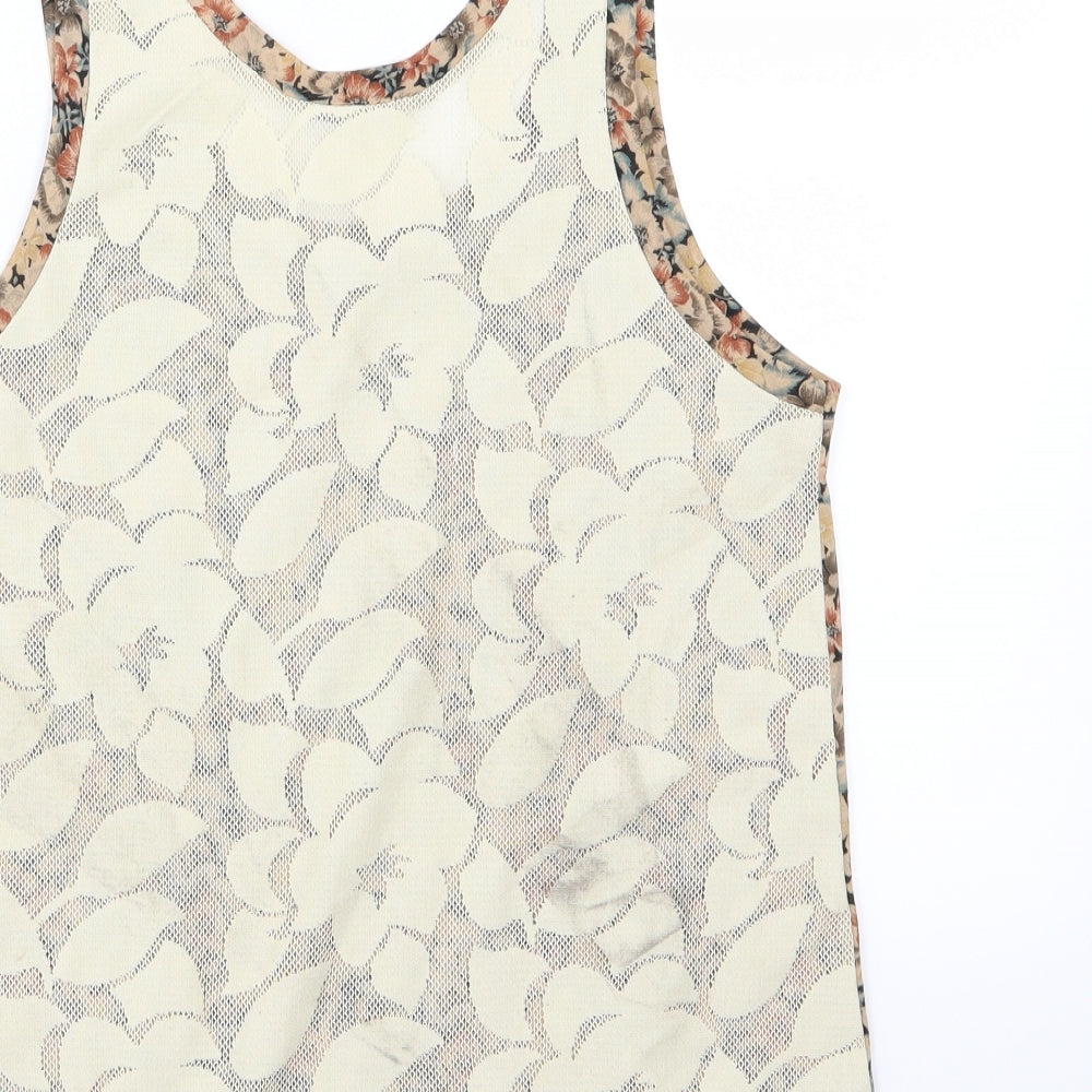 Womens Beige Floral Jersey Basic T-Shirt Size 12