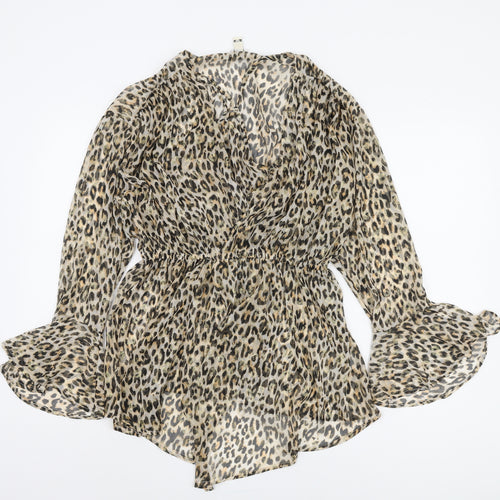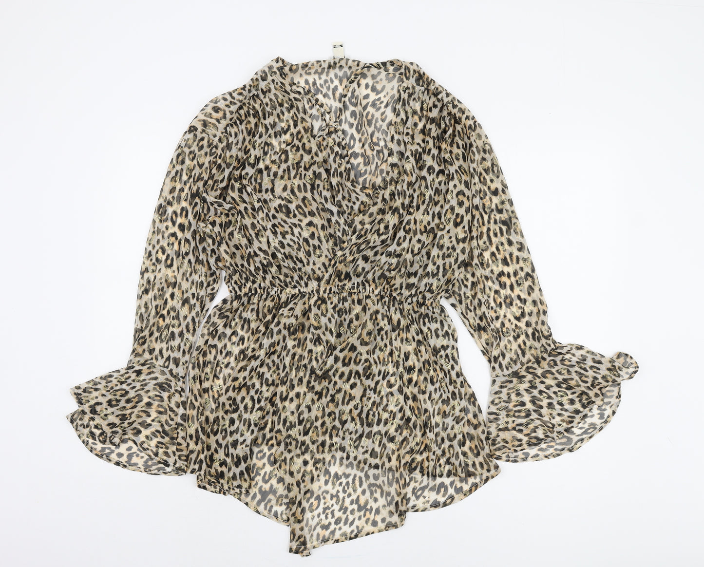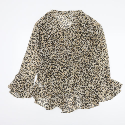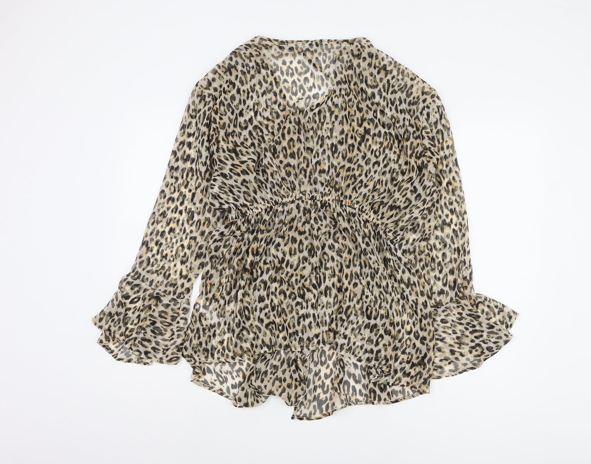 This exquisite River Island blouse is a chic addition to any wardrobe, perfect for both casual outings and party occasions. Designed in a wrap style with a stunning animal print in beige, it exudes a timeless appeal. Crafted from lightweight chiffon, it offers breathability and comfort, making it an ideal choice for spring and summer wear. The bell sleeves add a touch of dramatic flair, while the V-neckline complements the graceful silhouette. Made from 100% polyester, it promises easy care and lasting quality. Pair this blouse with your favourite jeans for a day out or a stylish skirt for an evening gathering. It's a versatile piece that can easily transition from a casual look to a night out, showcasing your unique style effortlessly. Don't miss out on this elegant blend of classic print and modern design. A must-have piece for those who adore fashion with an edge.