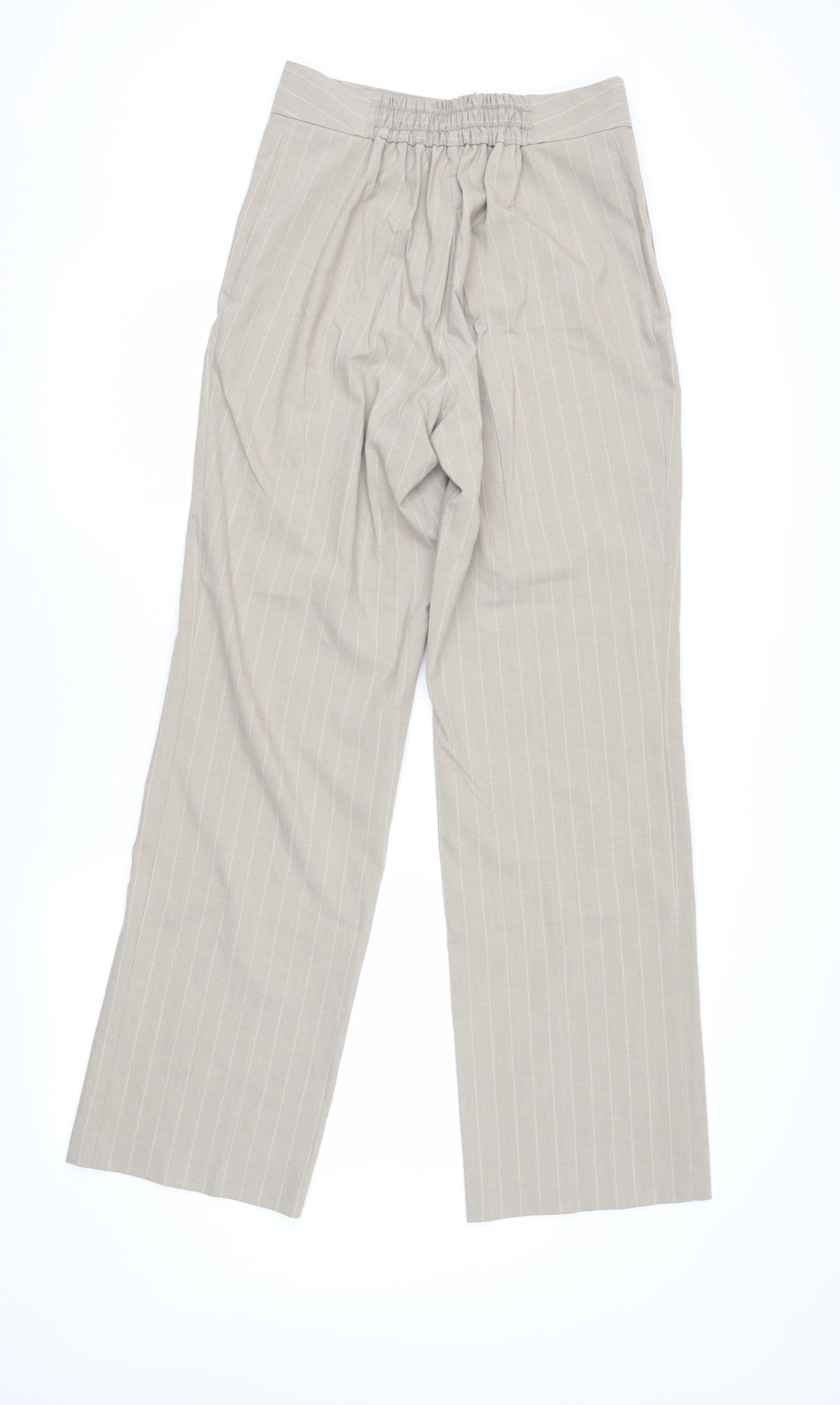Upgrade your wardrobe with these stylish River Island Women's Beige Pinstripe Trousers. Crafted from a high-quality blend of polyester, viscose, and elastane, these trousers offer a comfortable straight leg fit and an elastic waist design for added comfort. Ideal for both casual and workwear occasions, these trousers are perfect for the spring and summer seasons. The beige colour combined with a subtle pinstripe pattern ensures a classic yet chic look that pairs well with various tops and blouses. Designed for regular size types, these trousers are machine washable, providing easy care and maintenance. Despite their excellent condition and no visible wear, these trousers exude sophistication, making them an essential addition to any fashion-conscious individual's collection. Whether you're heading to the office or enjoying a day out, these trousers will keep you looking effortlessly stylish and comfortable. Don't miss out on this versatile piece from River Island, perfect for enhancing your everyday outfits.