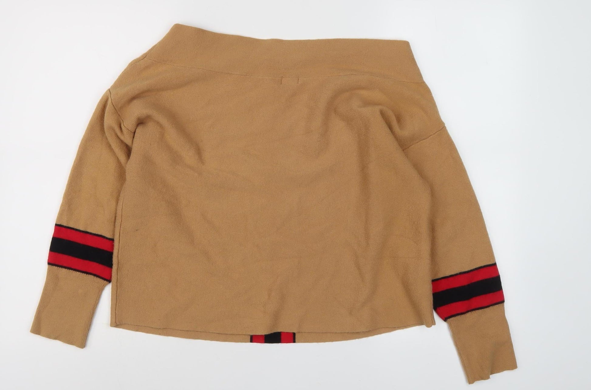 Elevate your stylish wardrobe with this elegant River Island beige pullover jumper, designed to keep you cosy and chic throughout the autumn and winter seasons. This women's jumper features a sophisticated boat neck and long sleeves, providing a timeless look that's perfect for casual outings. Decorated with striking red and black stripes, it adds a touch of playful fashion to your attire. Crafted from a premium blend of viscose, polyester, and nylon, it's a tight-knit fabric that offers both comfort and durability. Whether you're dressing up for a coffee date or enjoying a relaxed day out, this jumper effortlessly combines comfort with a touch of class. Its hand-wash care ensures it remains a staple in your collection for seasons to come. Embrace the cool weather in style with this must-have wardrobe essential.