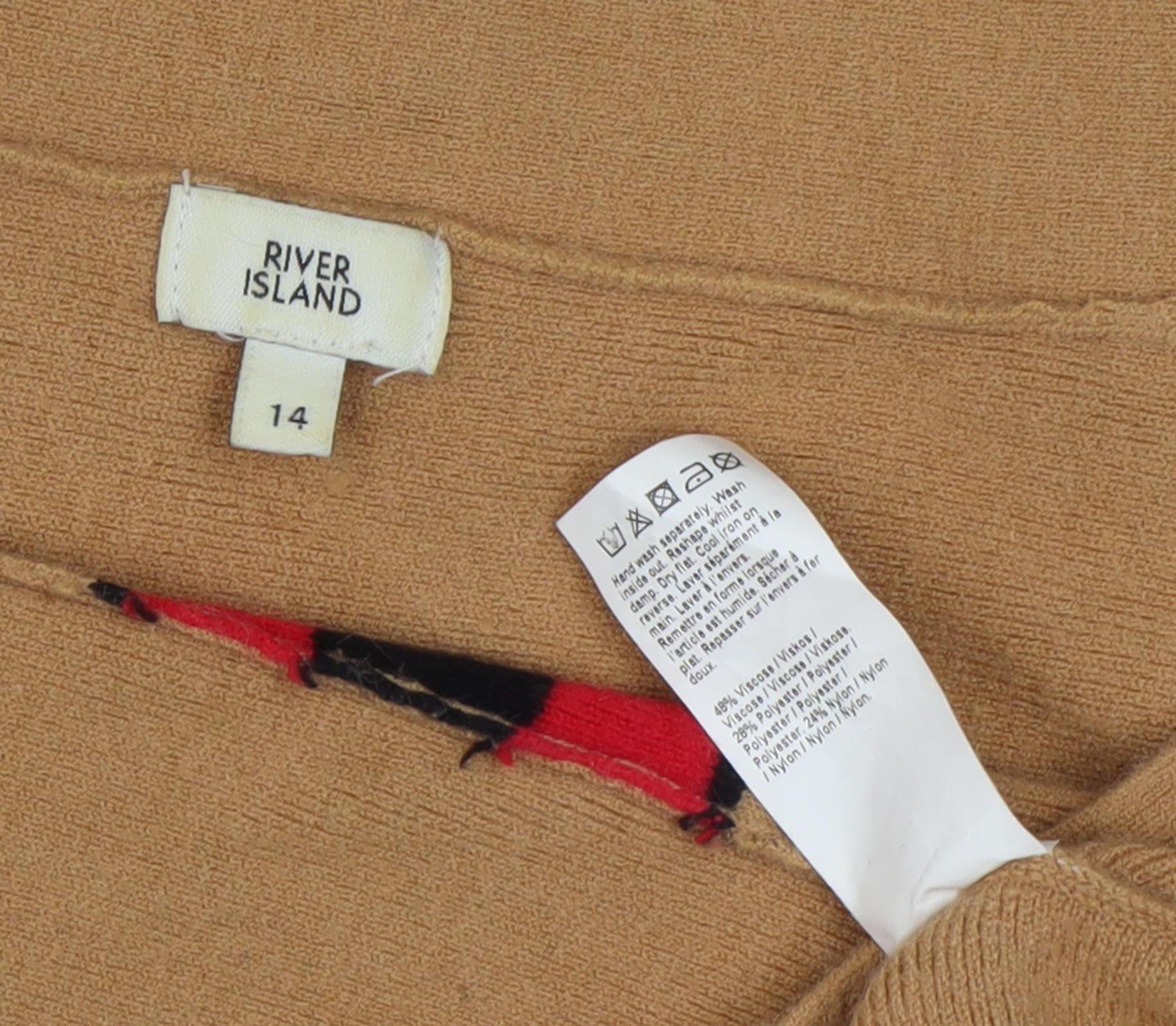 New Look Women Beige Ribbed Knit Long Sleeve Pullover Jumper Size 14