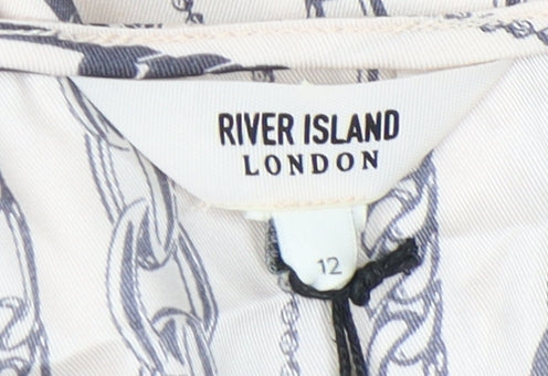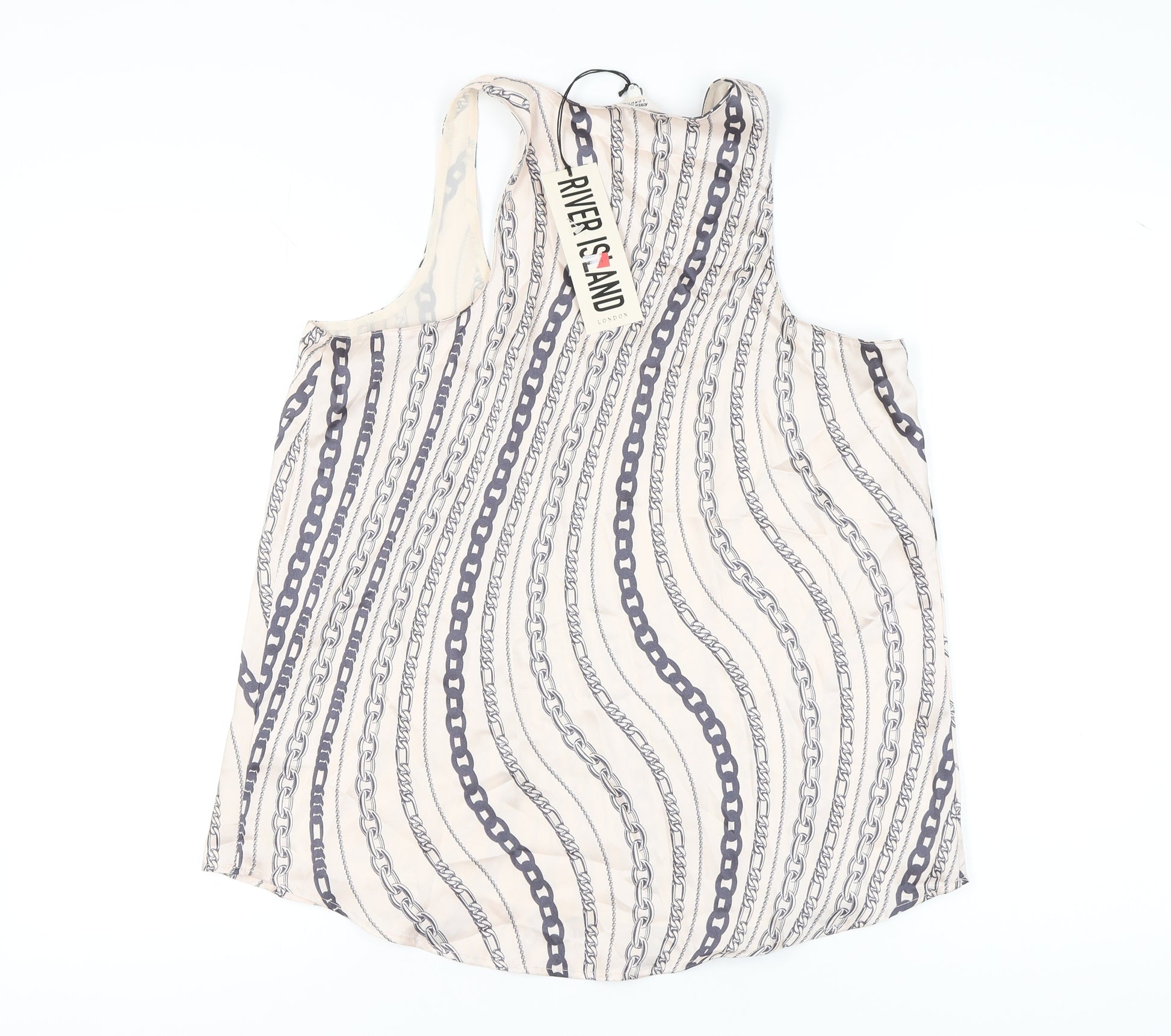 Upgrade your wardrobe with this stylish River Island Women's Tank Top in classic beige. Ideal for spring and summer occasions, the lightweight design ensures comfort while the geometric pattern adds a modern twist. Made from 100% polyester, this sleeveless top features a regular fit that's perfect for casual outings. The pullover closure ensures ease of wear, making it a versatile addition to your collection. With a sleek and basic style, this top is an effortless choice for a laid-back day. Whether pairing it with jeans or a skirt, this tank top promises to complement your ensemble effortlessly. Perfectly new with tags, it's a must-have item for fashion-forward individuals seeking simplicity combined with elegance.