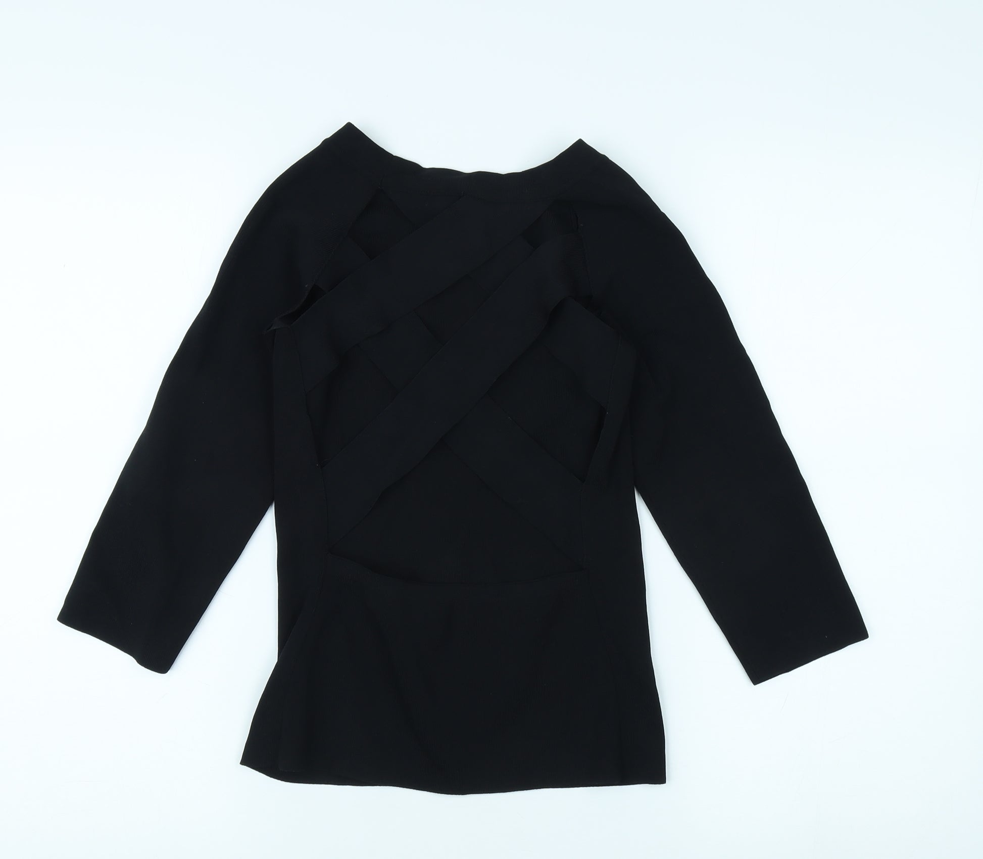 Embrace timeless elegance with this River Island women's black top. Crafted primarily from Polyamide and Viscose, this sophisticated piece boasts a unique boat neck design that accentuates the collarbone, accompanied by chic 3/4 sleeves. The luxurious solid black hue adds a touch of modernity to your wardrobe, allowing versatile styling for both casual and formal occasions. Ideal for those seeking a blend of comfort and class, the top highlights a regular fit, making it perfect for everyday wear. Whether paired with jeans for a laid-back look or a skirt for a more polished ensemble, this top promises to elevate your fashion game effortlessly. Don't miss out on this must-have staple for every wardrobe. With no visible signs of wear and reflecting excellent condition, this top is priced reasonably to suit your style and budget.