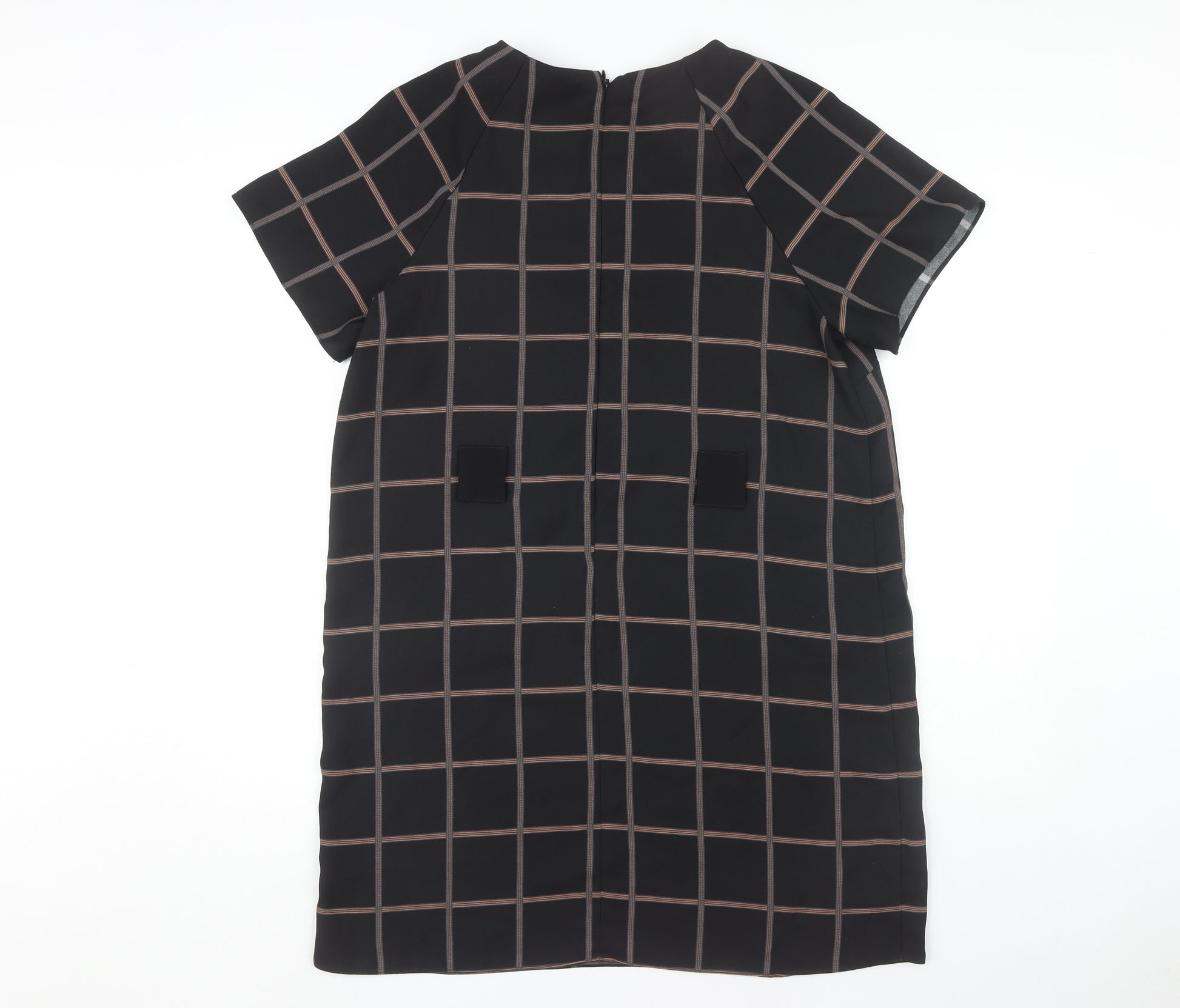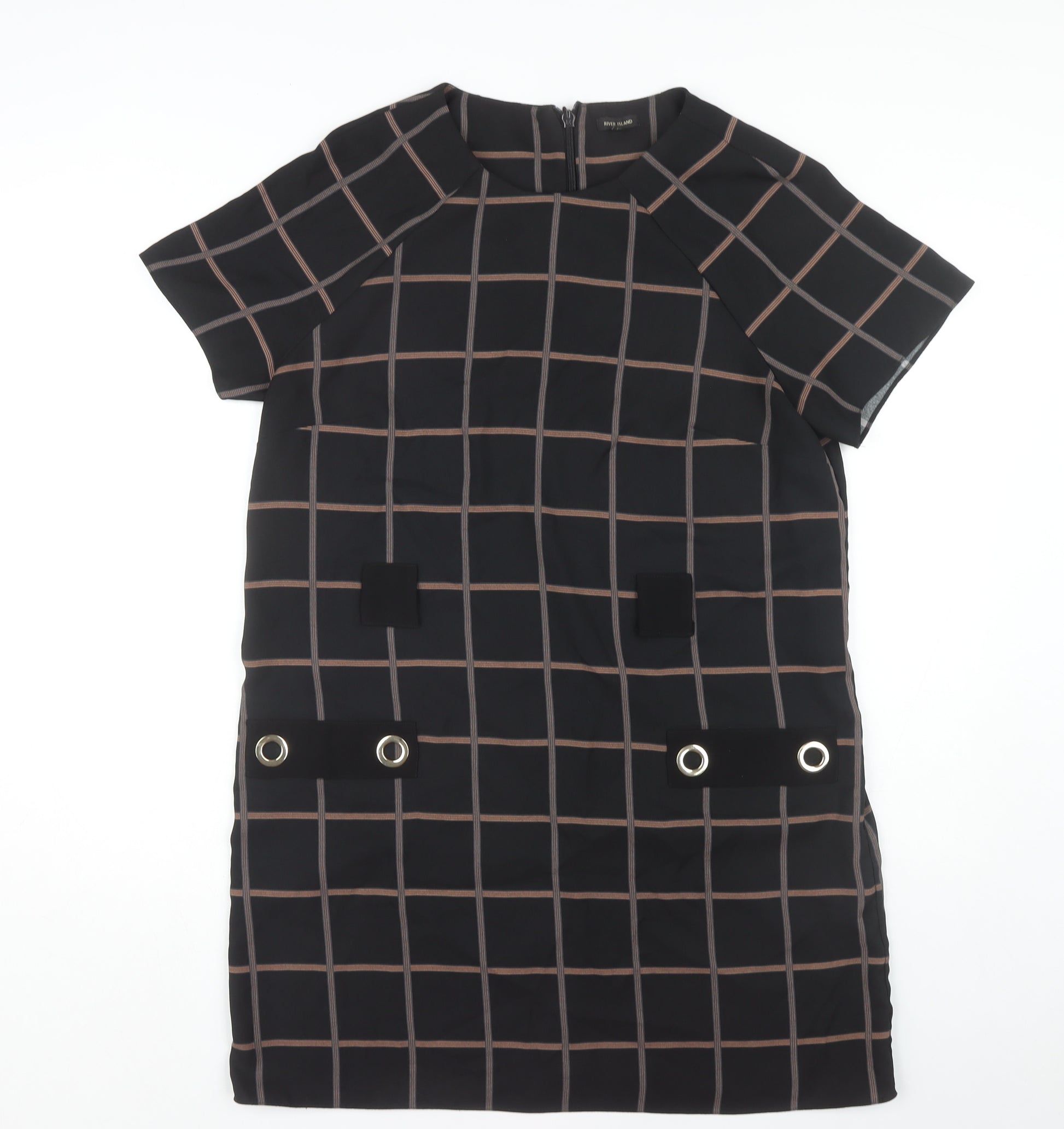 Elevate your wardrobe with this chic River Island Women's Black Check Shift Dress. Designed for those who appreciate contemporary style, this knee-length dress features a timeless check pattern, perfect for casual occasions. The crew neck and short raglan sleeves offer a classic silhouette, while the zip closure ensures a tailored fit. Made from lightweight polyester, this dress promises comfort and ease of wear, making it a versatile addition to your collection. With its machine washable design, upkeep is a breeze. Ideal for everyday wear or casual outings, pair it with your favourite accessories for a polished look.