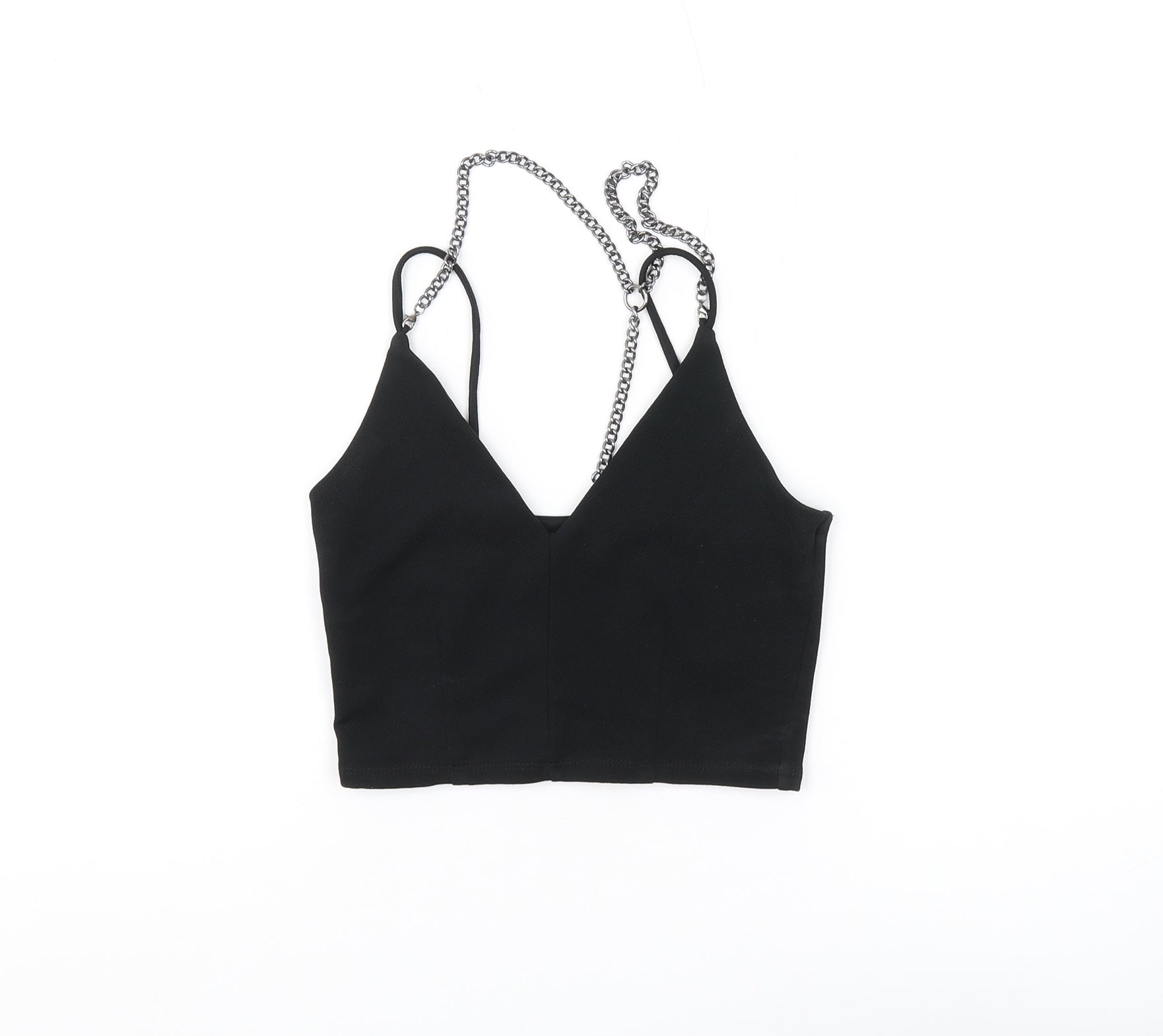Elevate your wardrobe with this chic River Island camisole, perfect for casual outings and party nights. Crafted from a soft jersey fabric blend of polyester and elastane, this slim-fit top offers both comfort and style. The solid black colour complements any ensemble, while the cropped style and V-neckline add a touch of modern sophistication. Its sleeveless design with strappy sleeveless accents makes it ideal for warm summer days. Machine washable for easy care, this top is a versatile addition to your collection, ensuring you stay on-trend and comfortable.