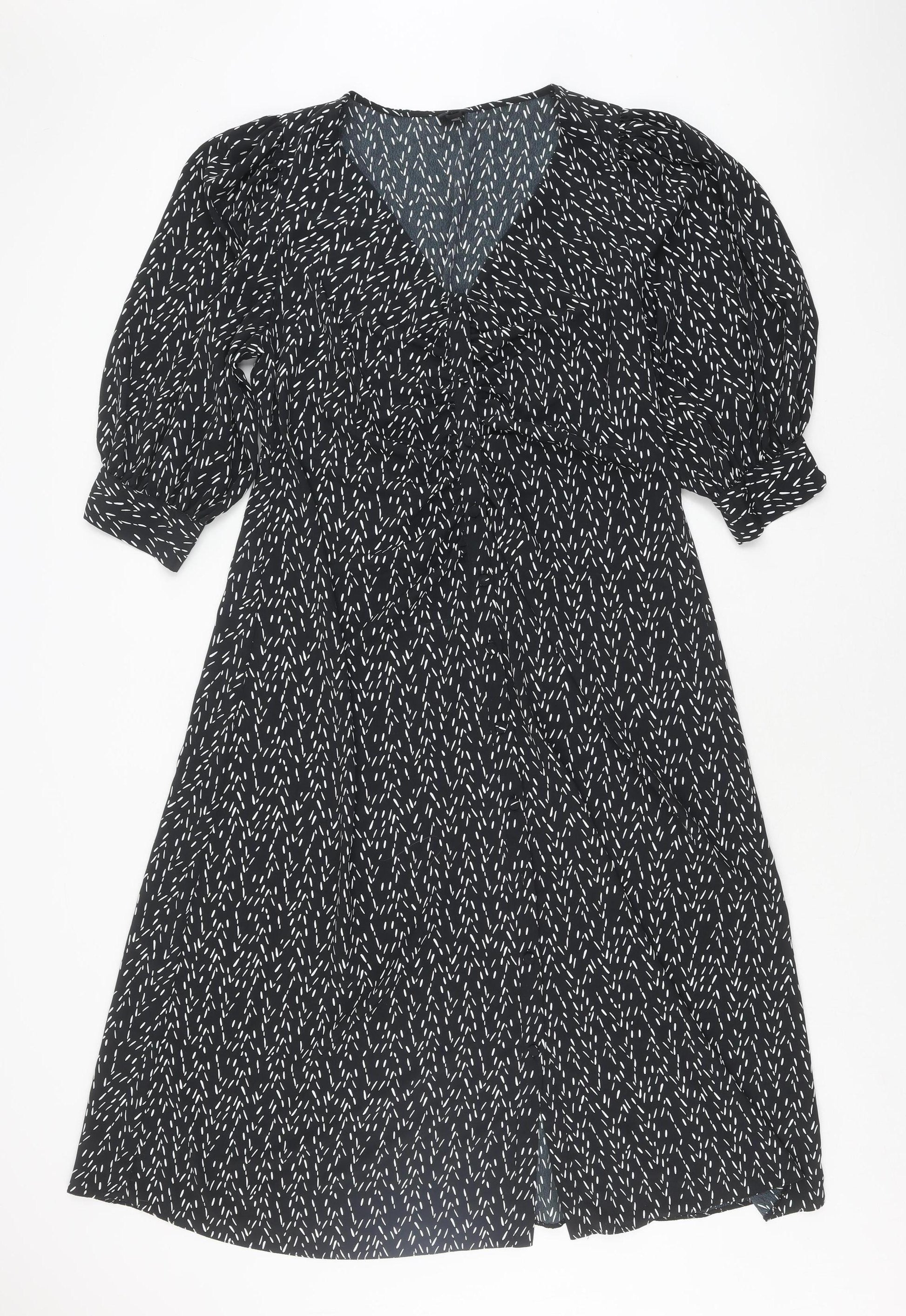 Elevate your wardrobe with this stylish River Island women's dress, perfect for updating your everyday outfit collection. Crafted from a high-quality woven polyester, this black dress features a subtle pattern that adds a touch of elegance to any ensemble. Ideal for a variety of occasions, this piece can seamlessly transition from casual gatherings to sophisticated events. The regular size 18 fit ensures comfort while beautifully complementing your figure. Although it lacks visible accents, the dress's simplicity allows for flexibility in accessorising, making it perfect for both understated and bold looks. Pair it with your favourite jewellery or a stylish belt to create an individual style statement. Perfect for women seeking both comfort and style, this dress is a fantastic addition for those who appreciate a versatile and timeless piece. Experience the quality and design synonymous with the River Island brand in this excellent condition preloved garment. Update your collection with this chic, easy-to-wear piece that promises to become a favourite staple.