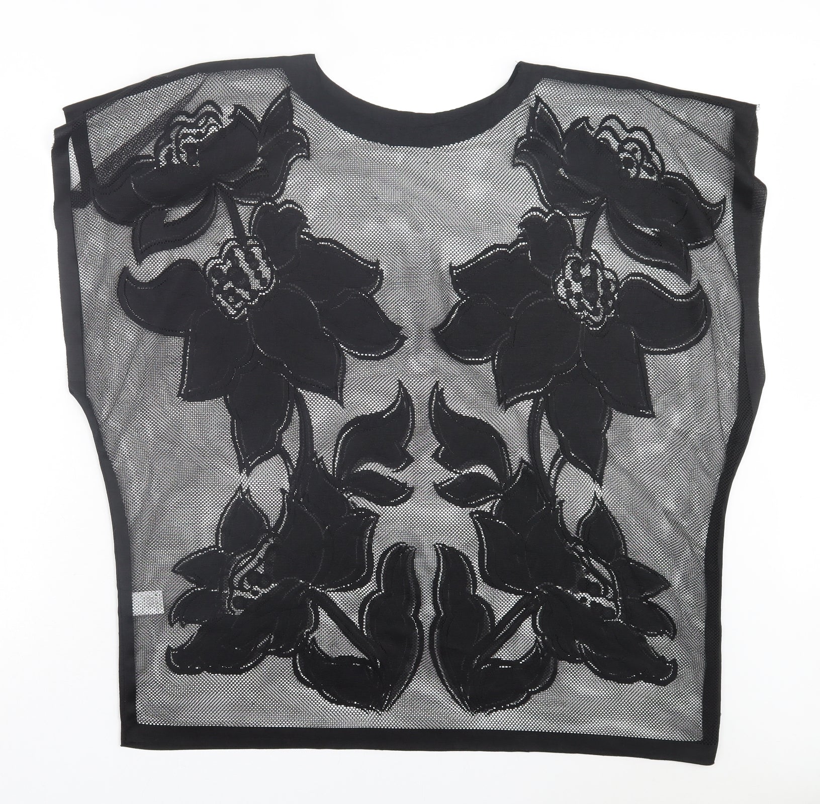 Womens Black Floral Polyester A-Line Size S Boat Neck Pullover - Cover up