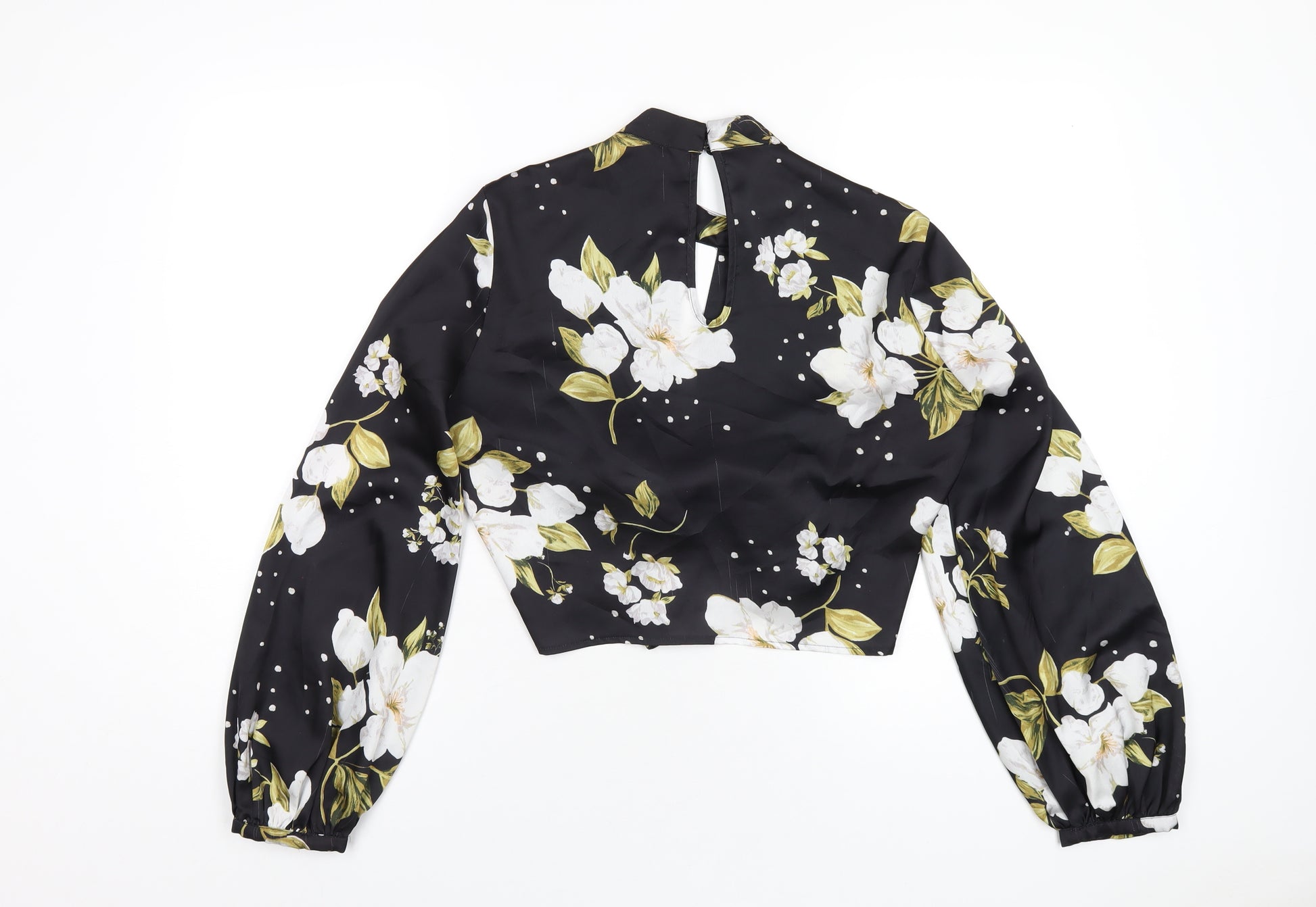 Womens Black Floral Polyester Basic Blouse Size 12 Round Neck