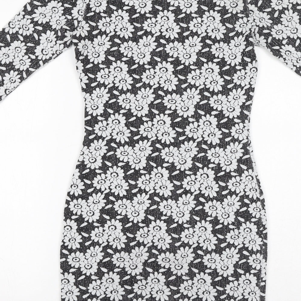Womens Black Floral Polyester Bodycon Size 6 Boat Neck Pullover