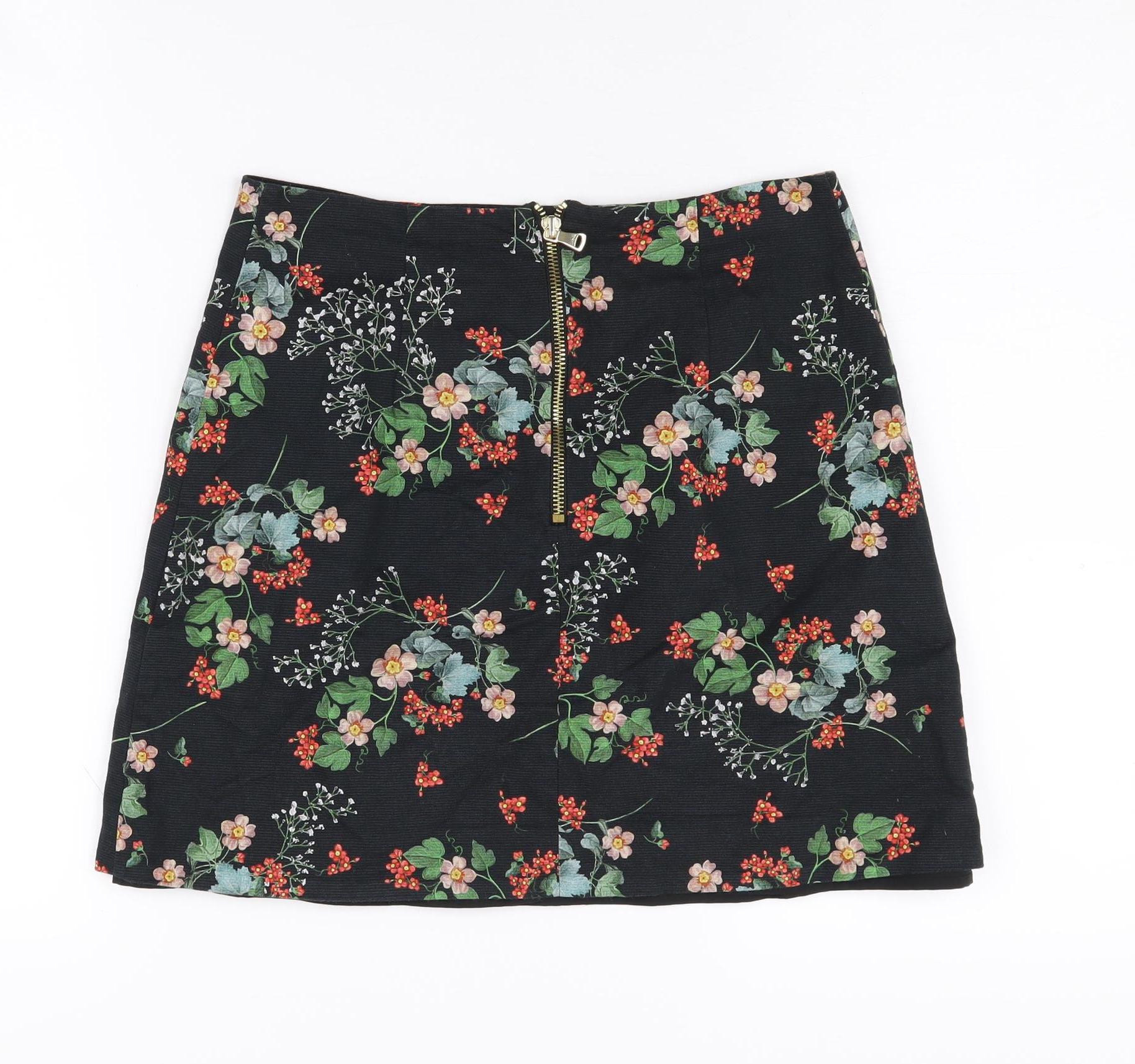 Elevate your wardrobe with this chic River Island women's skirt, featuring a sophisticated black base enhanced by a vibrant floral pattern. Designed for the modern woman, this skirt in size 8 offers a flattering fit with a touch of stretch from its high-quality cotton and elastane blend. Perfect for casual outings, the zip accent at the back adds a touch of flair and functionality, making it easy to wear. The skirt's mid-rise cut ensures a comfortable feel, suitable for all seasons. Machine washable for effortless care, this skirt blends both style and practicality. Its versatile look makes it a wardrobe staple, ideal for pairing with your favourite tops and accessories. Whether you're heading out for a casual day or a fun evening, this River Island skirt promises to be a beautiful addition to your outfit, reflecting elegance and modern style.