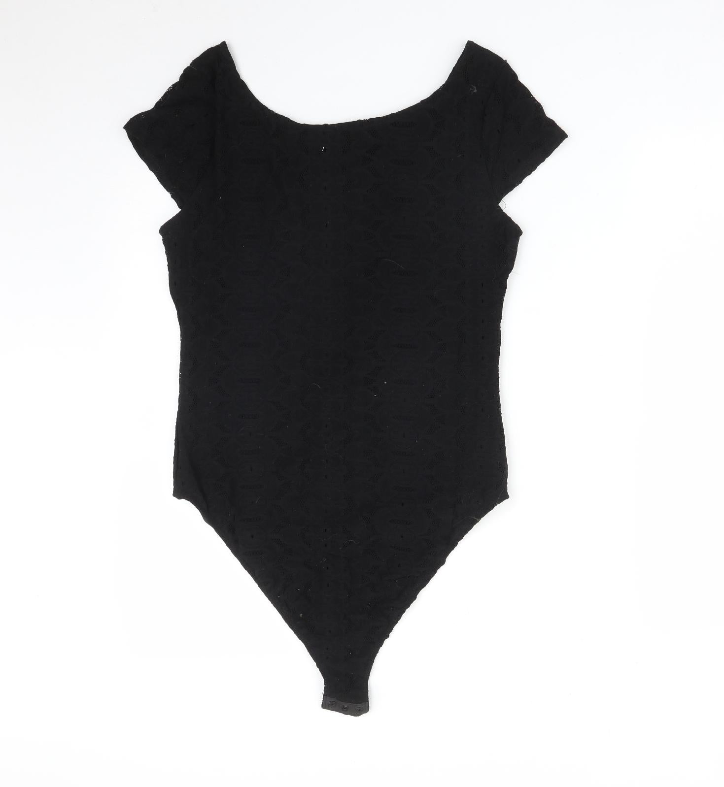 Womens Black Geometric Bodysuit One-Piece Size 12
