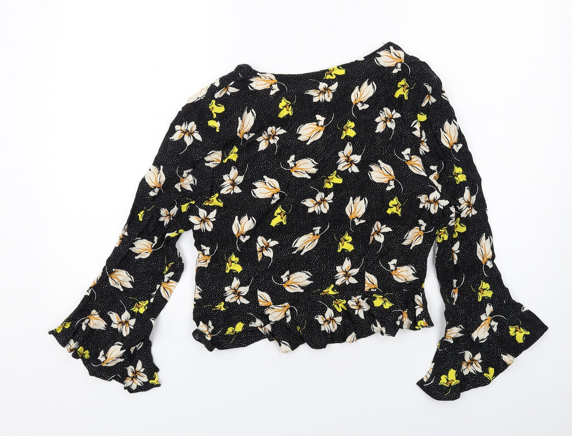 Womens Black Geometric Viscose Basic Blouse Size 14 V-Neck