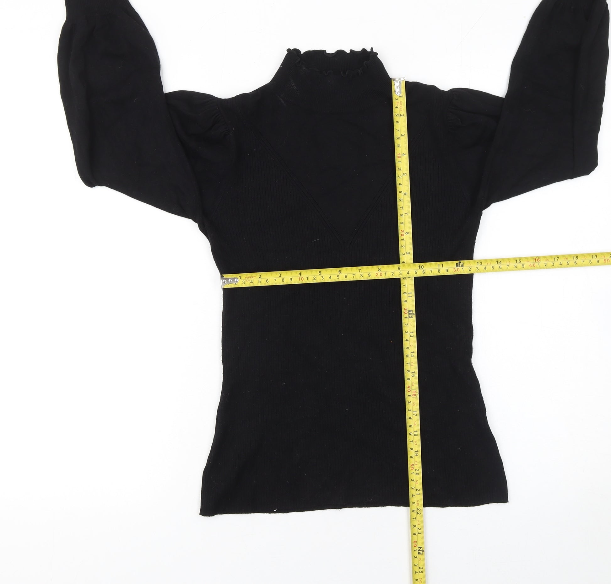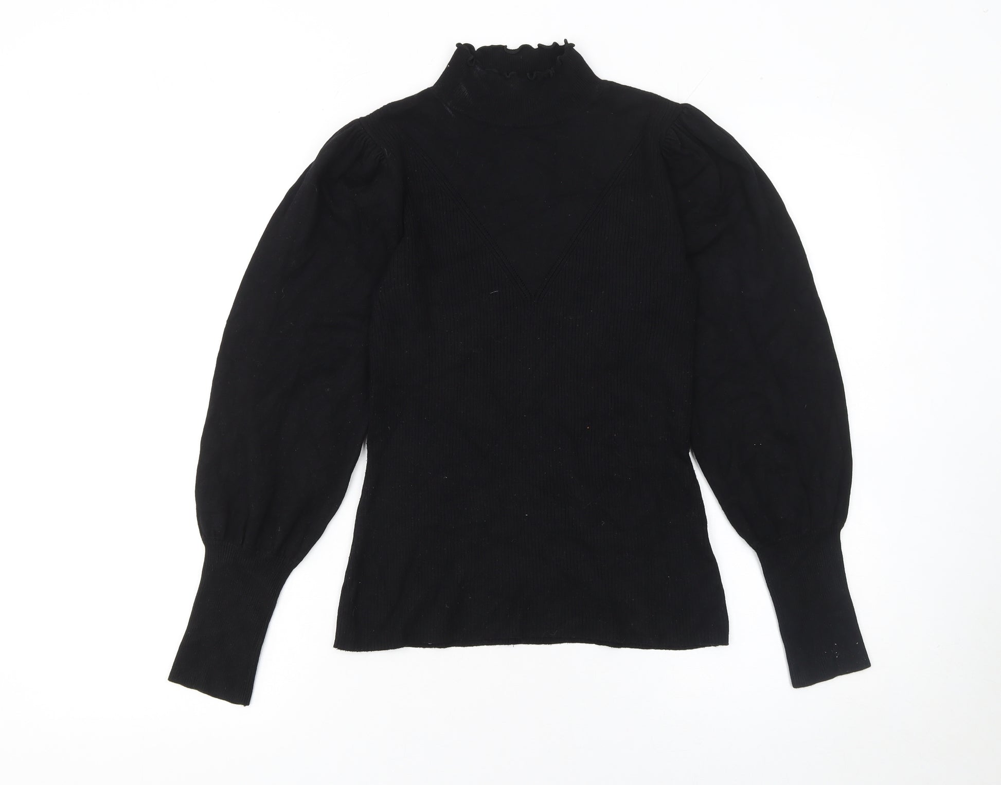 Women's Black High Neck Puff Sleeve Jumper Size 12