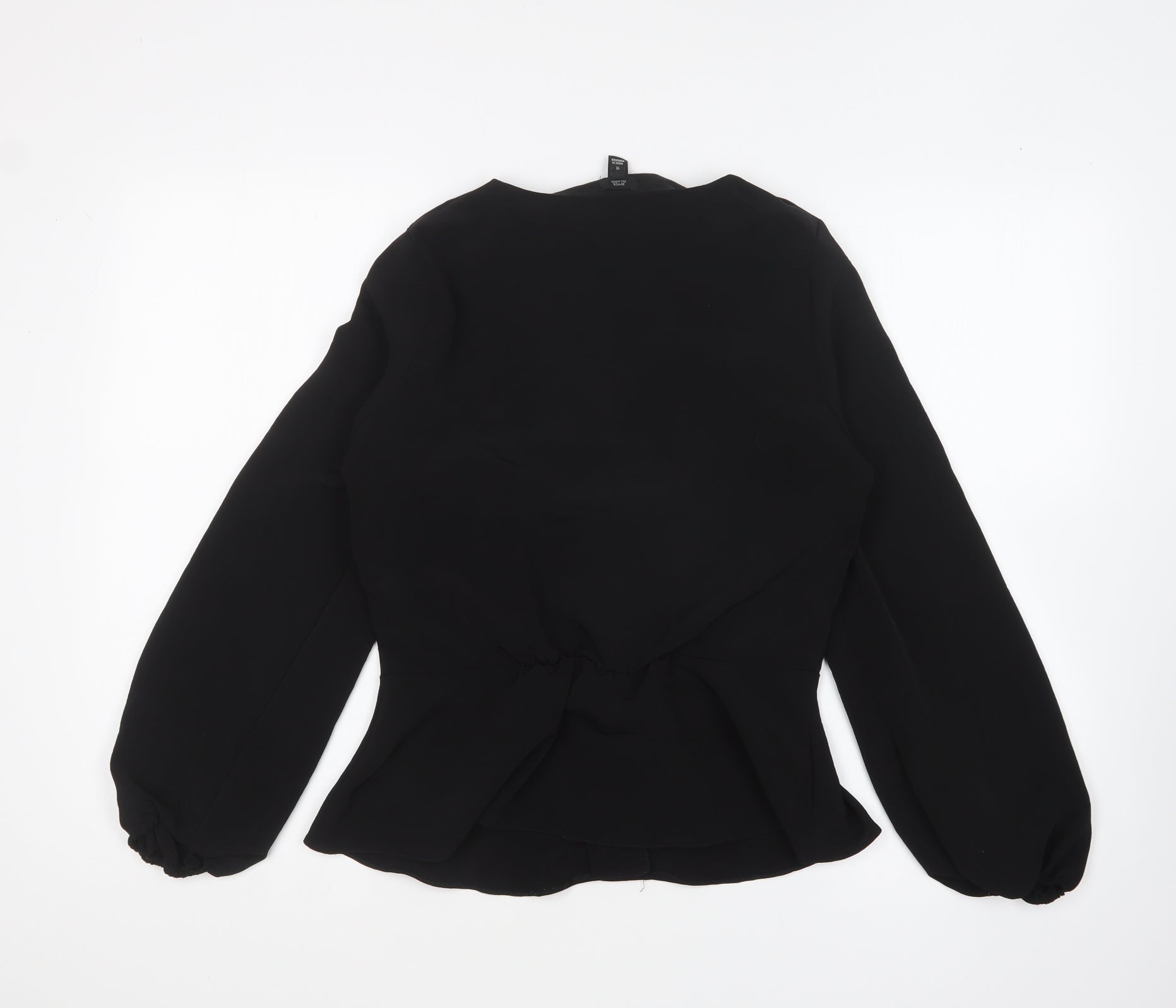 Womens Black Polyester Basic Button-Up Size 10 V-Neck