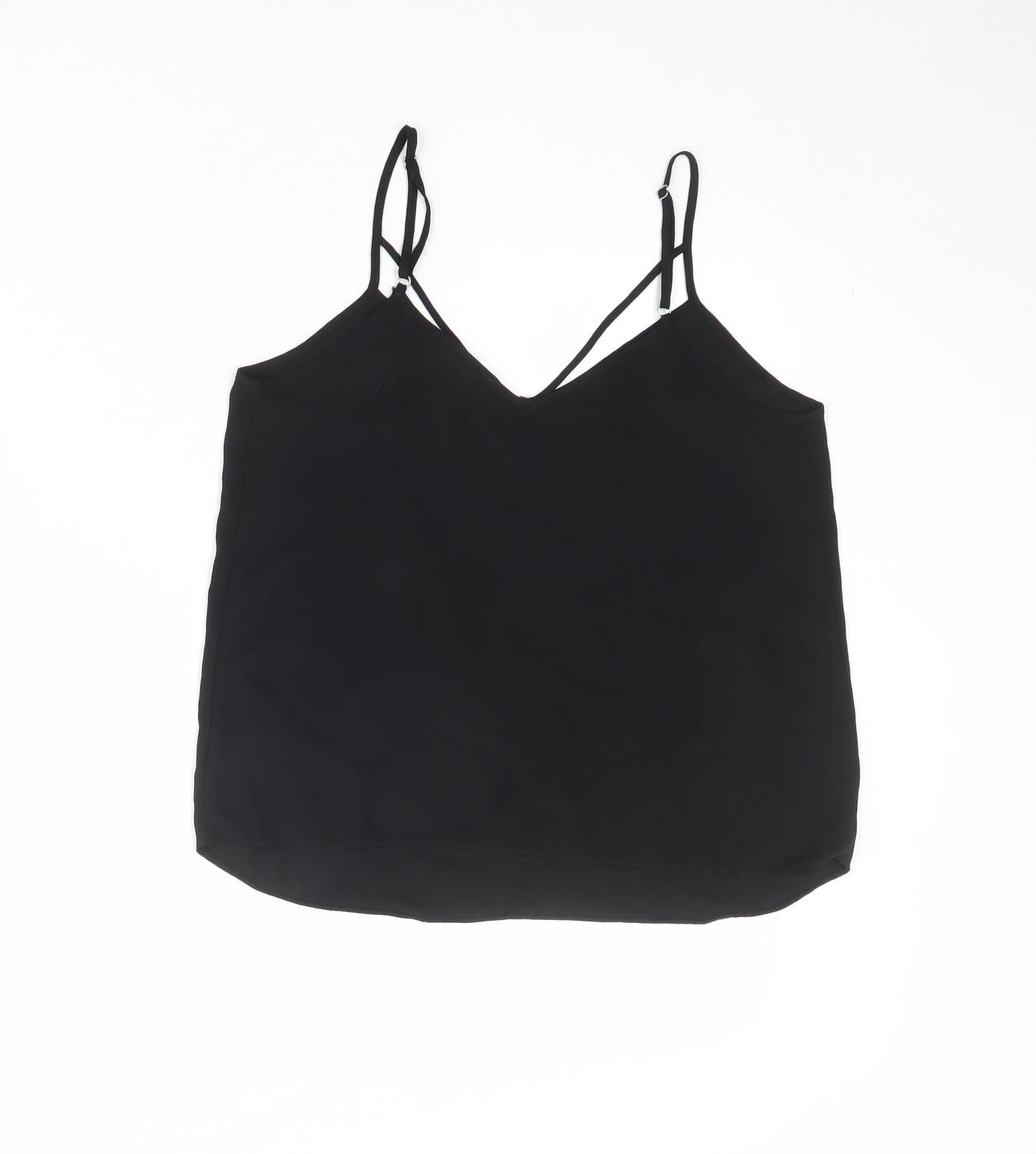 Womens Black Polyester Camisole Tank Size 10 V-Neck - Strappy