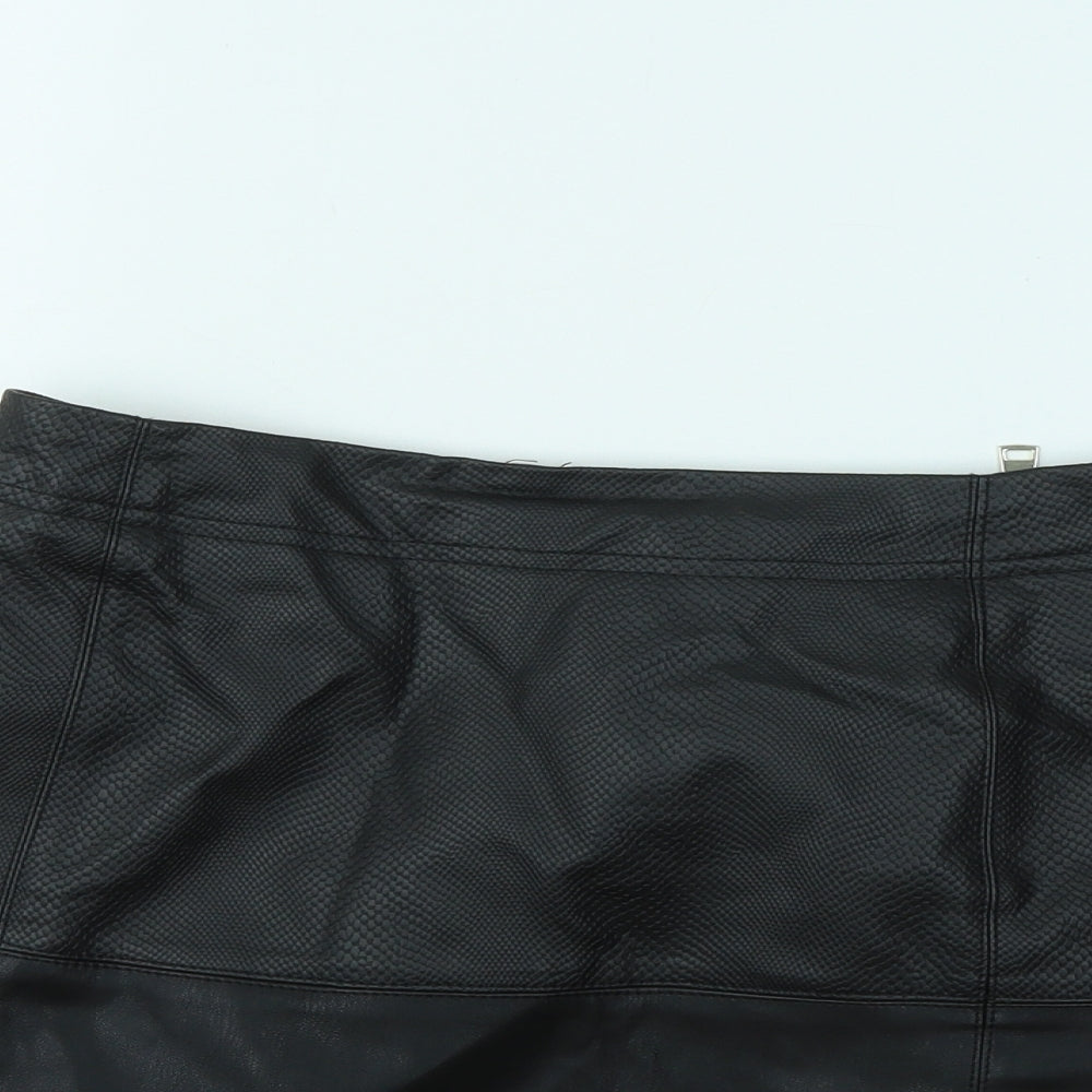 Womens Black Polyurethane A-Line Skirt Size 16 Zip