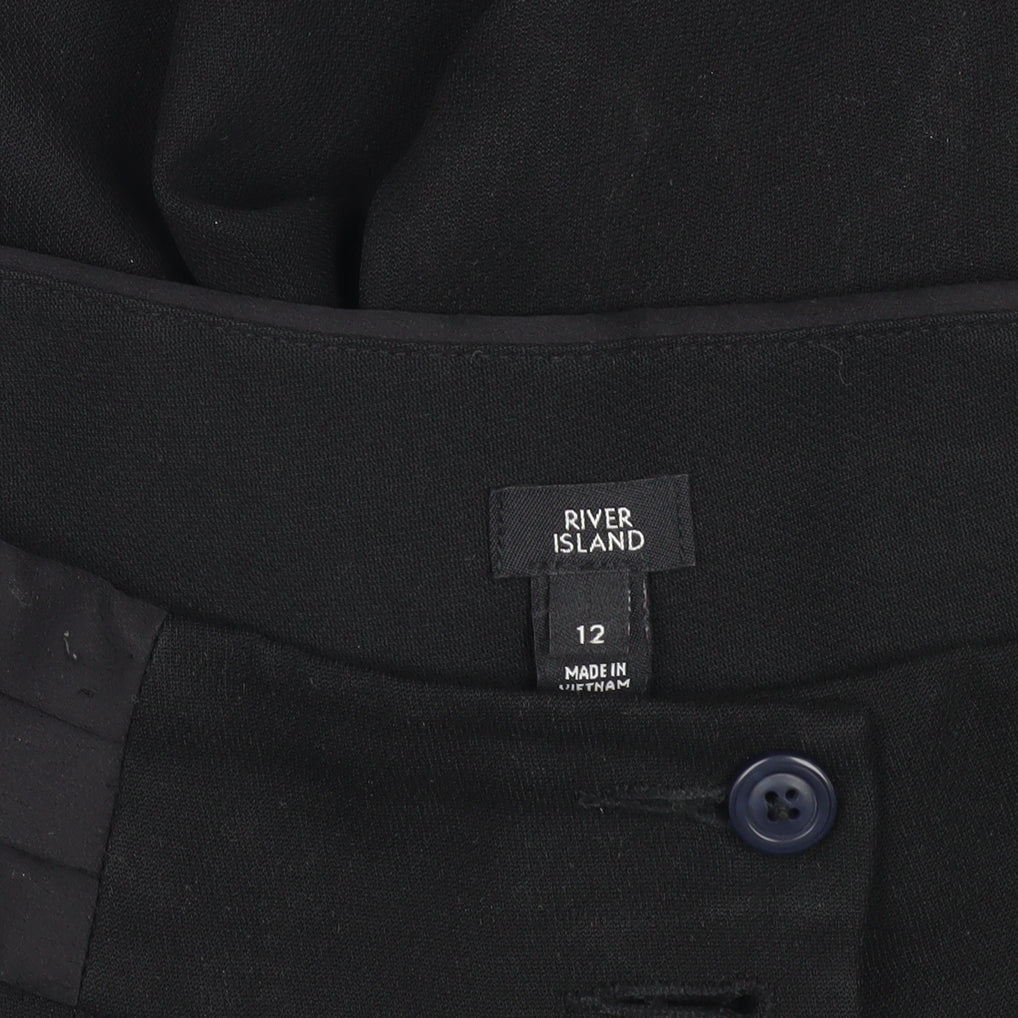 Step out in style with these versatile black trousers from River Island, designed for women who appreciate a blend of comfort and chic. Available in size 12, these trousers are tailored to provide a regular fit, making them ideal for both business and casual occasions. Crafted primarily from polyester with a touch of elastane, they ensure a comfortable and stretchy wear, maintaining their shape throughout the day. The trousers feature a straight leg style, offering a classic silhouette that's perfect for pairing with your favourite tops or blouses. Designed with convenience in mind, these trousers include practical pockets and are easy to fasten with a button and zip closure. Their flat front and mid-rise cut make them a flattering choice for every woman. The deep black colour adds a touch of sophistication, making these trousers a staple for your autumn and winter wardrobe. Although gently used, their condition is excellent, with slight wear and minor lint that’s easily removable. These trousers are a testament to River Island's commitment to quality and style, providing a garment that's both stylish and durable. Ideal for those who want to make a subtle statement, these trousers are as functional as they are fashionable. Enhance your wardrobe today with this reliable and stylish piece that offers the perfect blend of fashion and function.