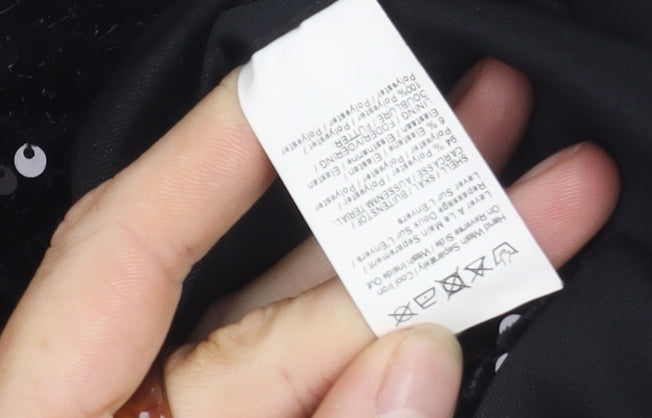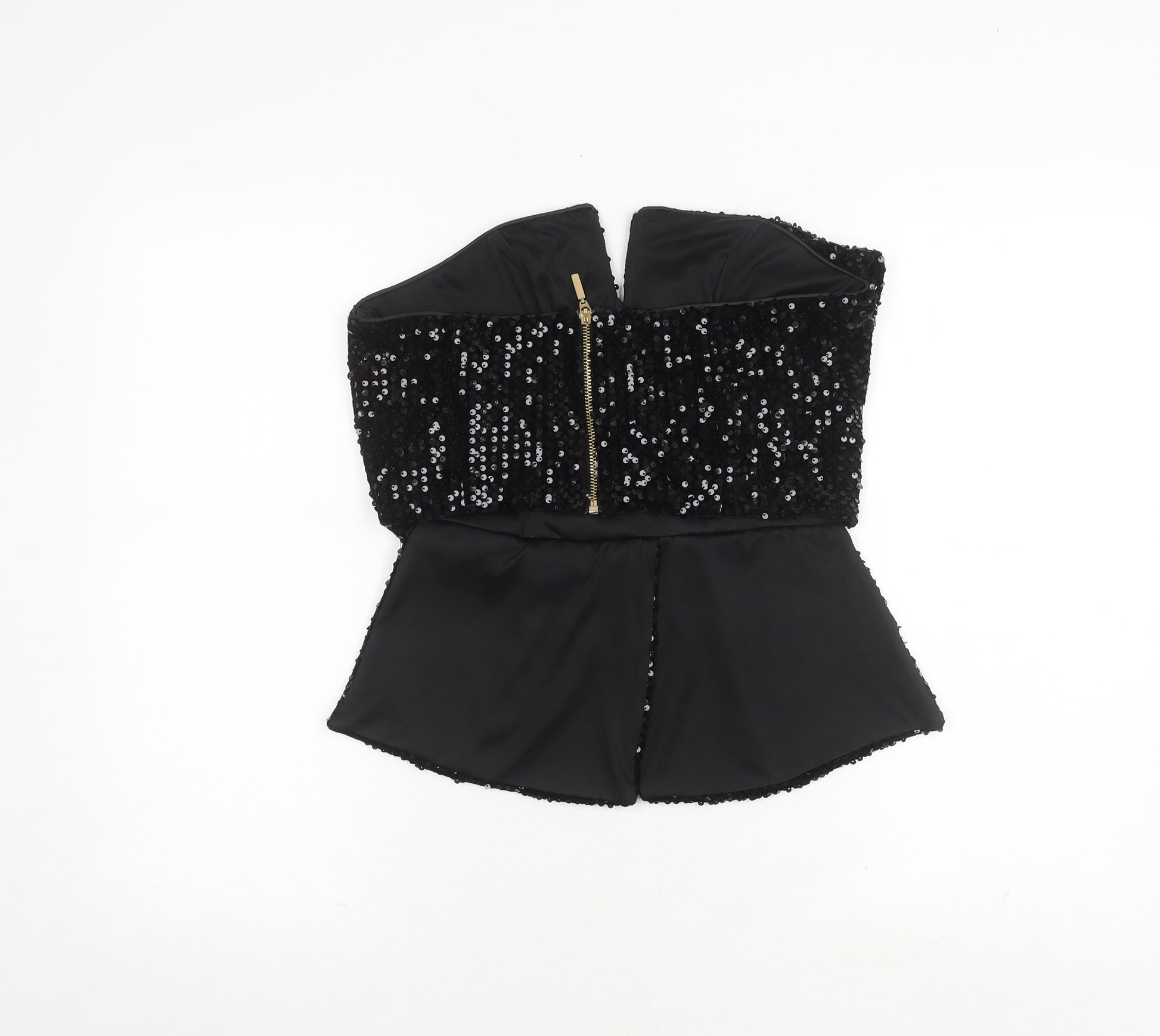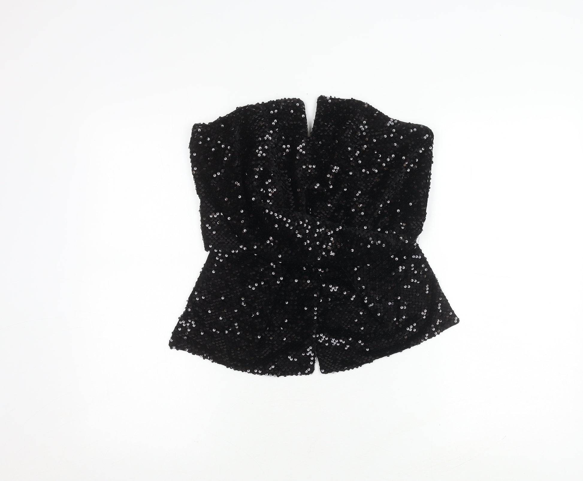 Be the centre of attention at your next event with this stunning River Island Women's Black Sequin Strapless Top. Designed in a classic solid black colour, this top makes a subtle yet impactful statement. The size 14 fit ensures comfort and style, perfect for women seeking a fashionable and flattering piece for party occasions. The stylish strapless design combines with the sequin accents for a touch of glamour. Ideal for cocktail parties and evening soirees, the top features a convenient zip closure for easy wear. Crafted from a high-quality blend of polyester, elastane, and viscose, it promises durability and a comfortable fit, making it a perfect addition to any wardrobe. Whether paired with trousers or a skirt, this top is your ticket to effortless chic flair. Add some sparkling accessories and let the night shine on you.