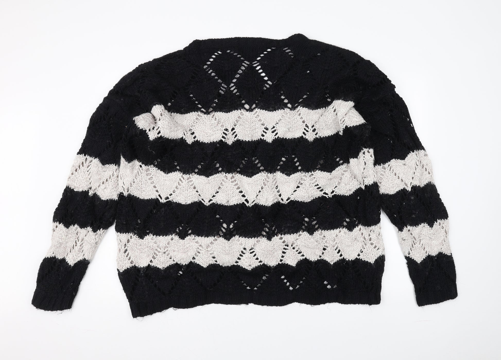 Womens Black Striped Knit Pullover Jumper Size 18