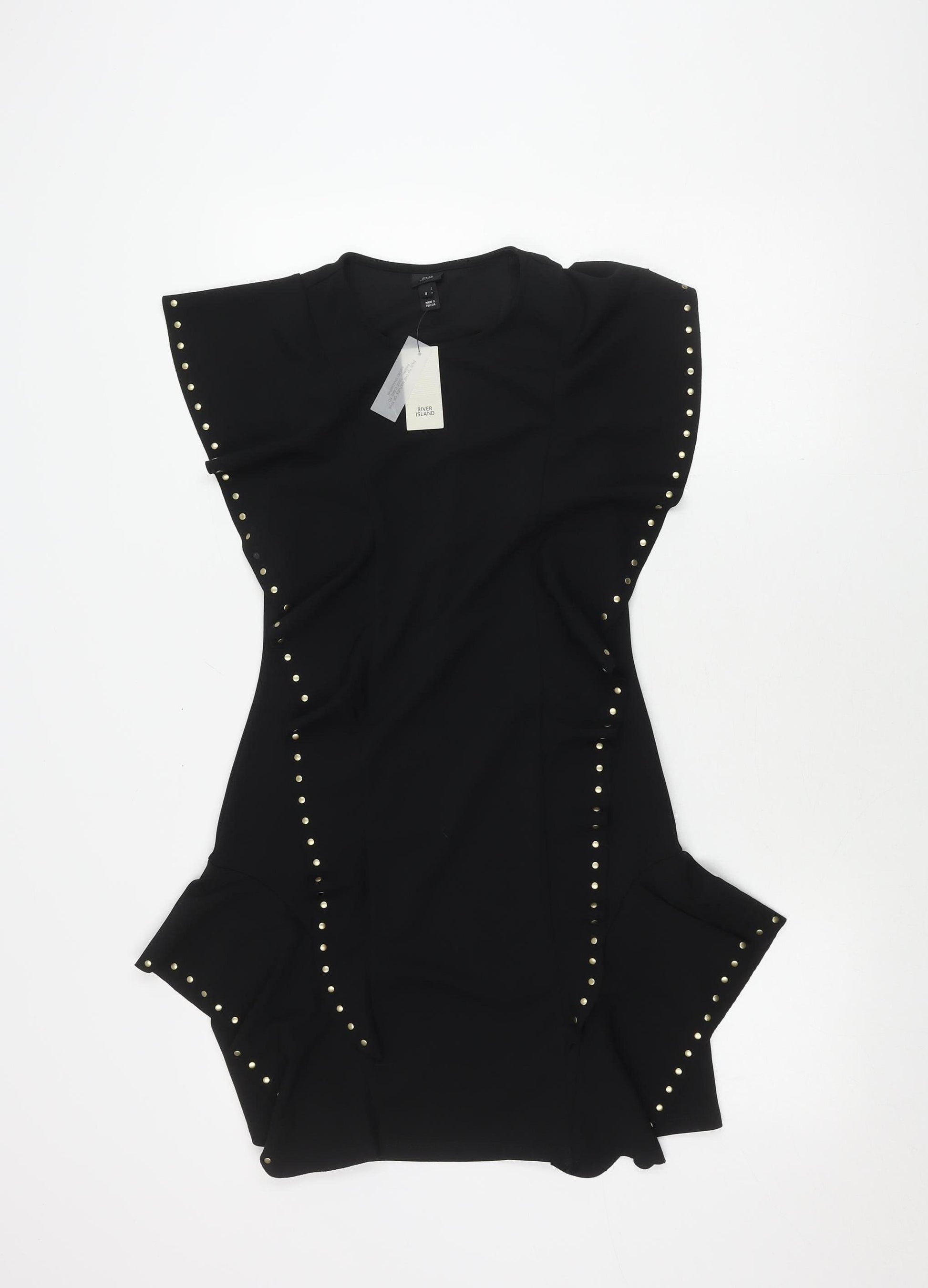 Elevate your wardrobe with this stunning River Island women's dress. Impeccably crafted in sleek black, this dress features chic studded accents for a modern twist. Perfect for any stylish occasion, its versatile style allows you to dress it up or down effortlessly. Designed for the fashion-forward woman, this dress offers a flattering fit in size 8 UK. Pair it with your favourite accessories to create an unforgettable look. Grab this new with tags item now and make a statement wherever you go.