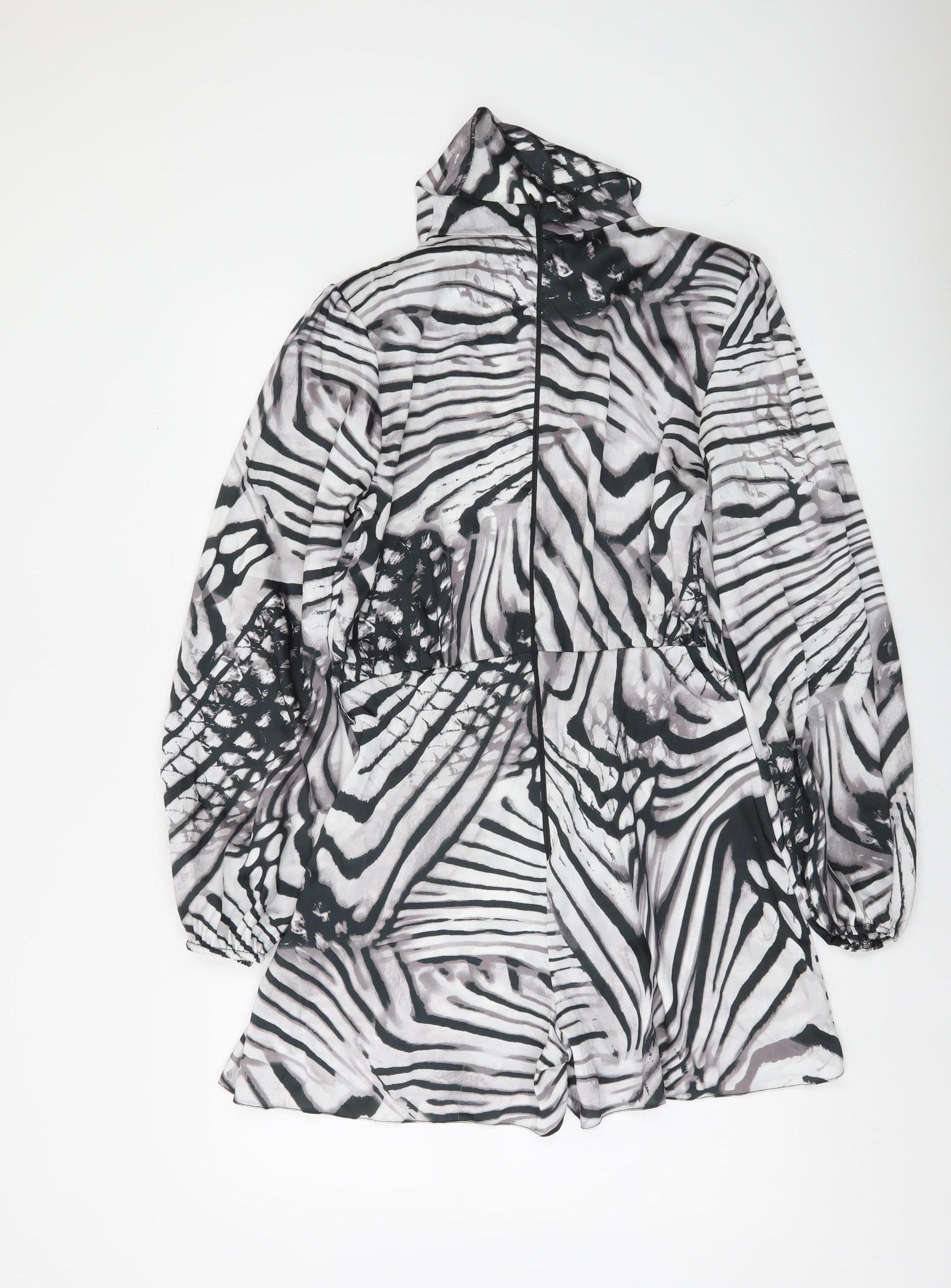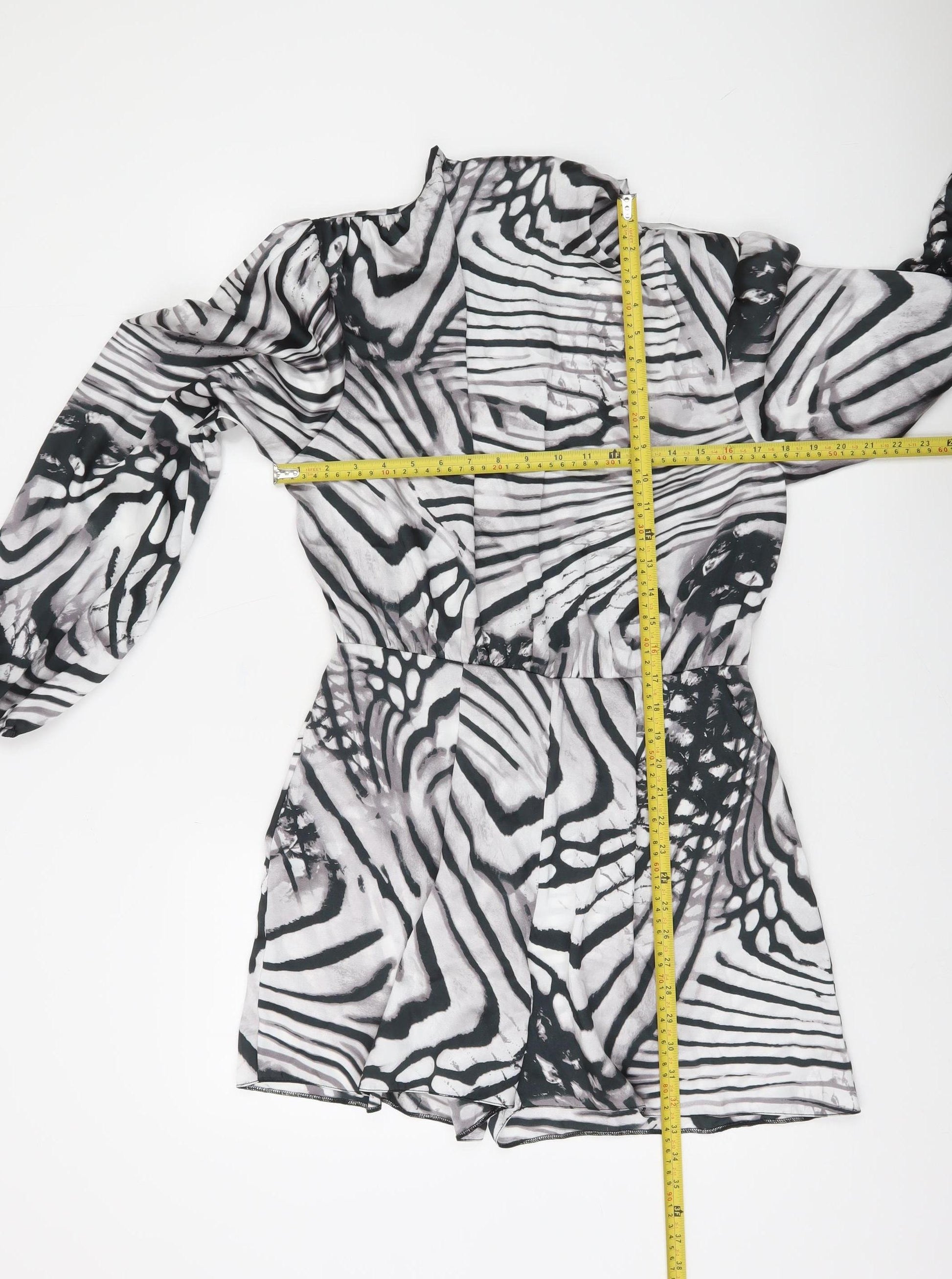 Womens Black White Zebra Print Long Sleeve Playsuit Size 12