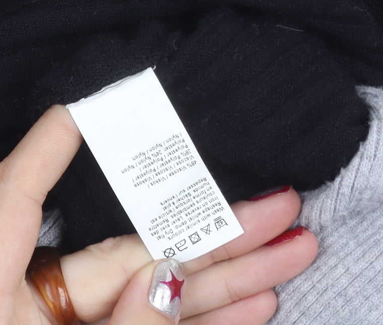 Elevate your knitwear collection with this stylish River Island women’s pullover jumper, perfect for the cooler seasons. In a chic and versatile colour block design, this relaxed-fit piece features striking black, cream, and grey geometric panels that make a statement while remaining easy to style. Crafted from a quality blend of viscose, polyester, nylon, and wool, it offers a soft feel against the skin while being lightweight enough for layering, making it ideal for all seasons, especially autumn and winter. The mock neck adds a touch of sophistication while keeping you cosy, and the long dolman sleeves provide a comfortable and flattering silhouette that drapes beautifully on the body. The rib-knit texture enhances the chunky yet refined look, making it perfect for casual outings, coffee catch-ups, or relaxed weekend wear. With its machine-washable fabric, caring for this jumper is both easy and convenient, maintaining its shape and softness after every wash.Designed for the modern woman who loves comfort without compromising on style, this piece embodies River Island’s signature balance of trend and wearability. Pair it effortlessly with skinny jeans and ankle boots for an effortlessly chic look, or dress it down with leggings and trainers for laid-back style. The versatile palette ensures it works with a variety of wardrobe staples, making it a go-to jumper for transitional layering.Condition is very good with only light bobbling and minimal signs of wear, promising plenty of life and style left in it. An excellent addition to your knitwear line-up, both functional and fashionable, it’s ready to become your next go-to piece for stylish layering in the colder months.