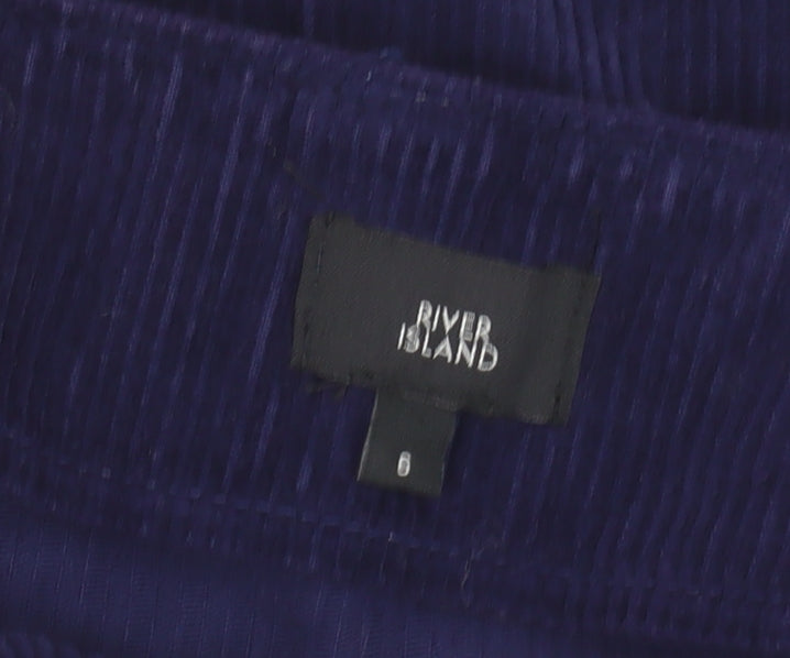 Step out in style with this chic River Island mini skirt, perfect for any casual outing or evening get-together. Crafted from premium cotton, this blue corduroy skirt not only ensures comfort but also boasts a high-waisted design to accentuate your figure. With a classic buckle closure and practical pockets, it's a blend of functionality and fashionable flair. The versatile design allows it to be paired effortlessly with a variety of tops and shoes, making it an essential addition to your wardrobe. Whether you're heading to a casual day out or a relaxed evening, this skirt ensures you look stunning with minimal effort. The soft texture and elegant design exude sophistication, while the timeless style ensures it remains a staple for many seasons. Don't miss out on this opportunity to own a piece of River Island fashion, just a click away. Ideal for autumn and winter, this skirt is machine washable, serving as a convenient and stylish option for the modern woman.