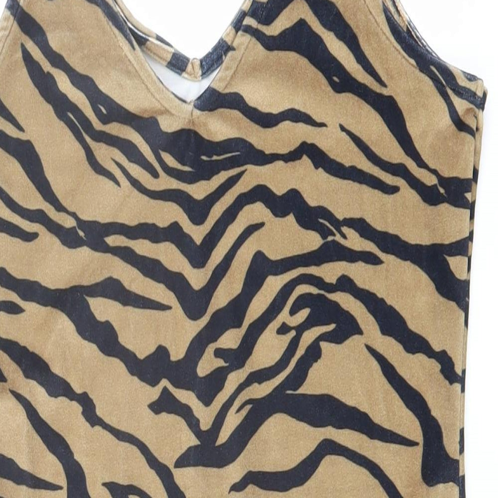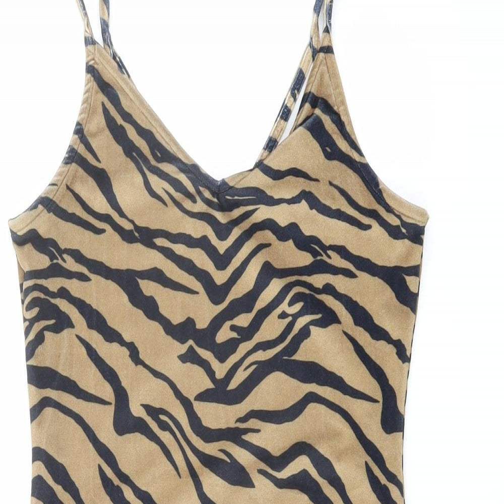 Womens Brown Animal Print Polyester Bodysuit One-Piece Size 10 Snap - Tiger Pattern