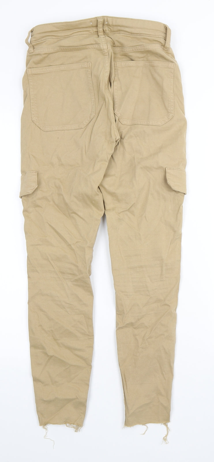 Womens Brown Cotton Cargo Trousers Size 8 L26 in Regular Button