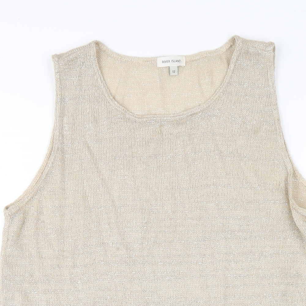 Womens Gold Acrylic Basic Tank Size 12 Round Neck