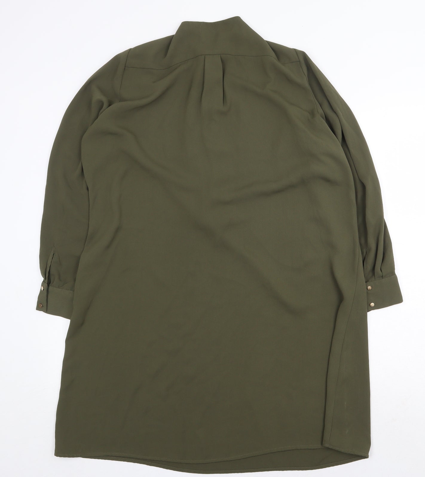 Womens Green Polyester A-Line Size 14 Round Neck Zip
