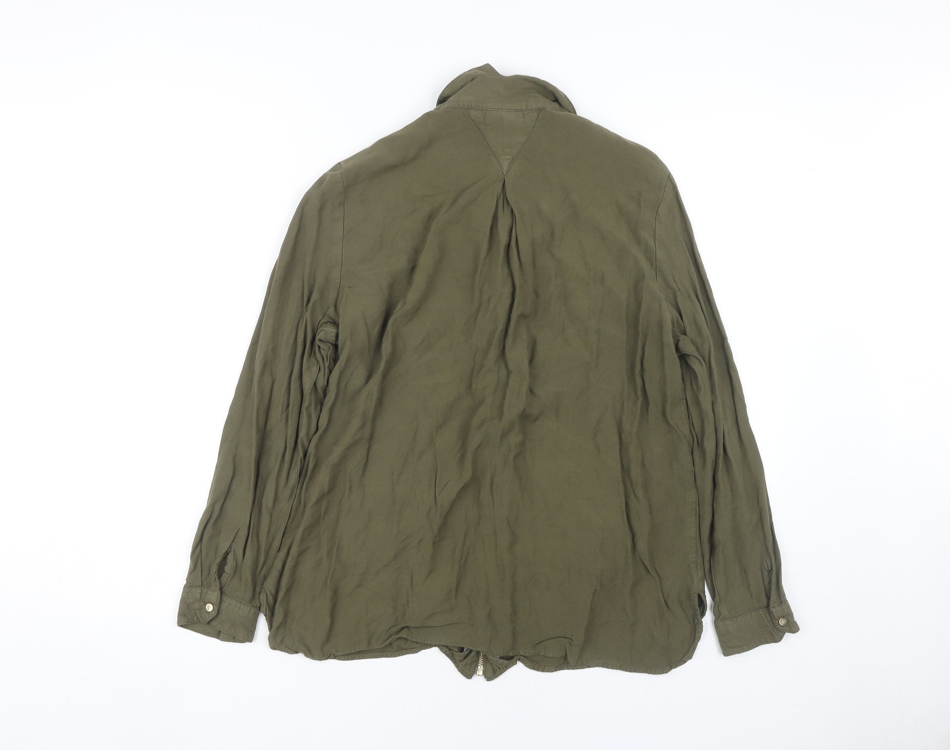Upgrade your casual wardrobe with this stylish women's blouse from River Island. Designed in a versatile green hue, this lightweight piece is perfect for spring and autumn weather. The blouse features a long sleeve and a convenient zip closure, making it an effortless addition to any ensemble. Crafted from 100% viscose, the material ensures comfort and a breathable fit. Ideal for casual outings, it pairs beautifully with jeans or trousers for a laid-back look. Don't miss the chance to add this fashionable staple to your collection.