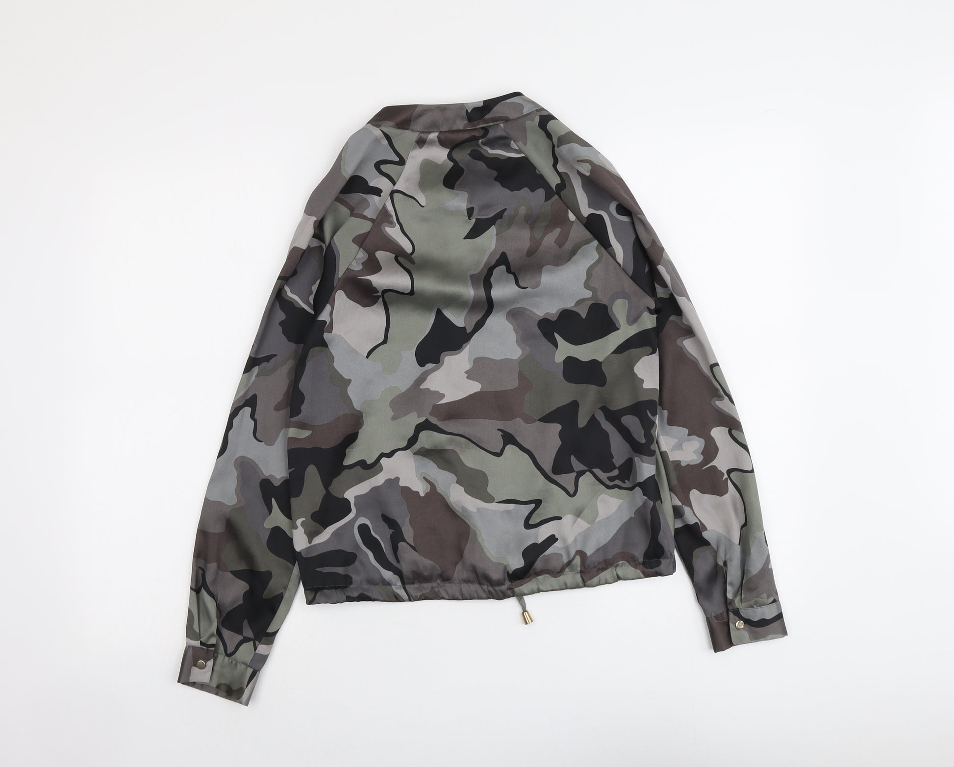 Womens Grey Camouflage Polyester Bomber Jacket Jacket Size 6 Zip