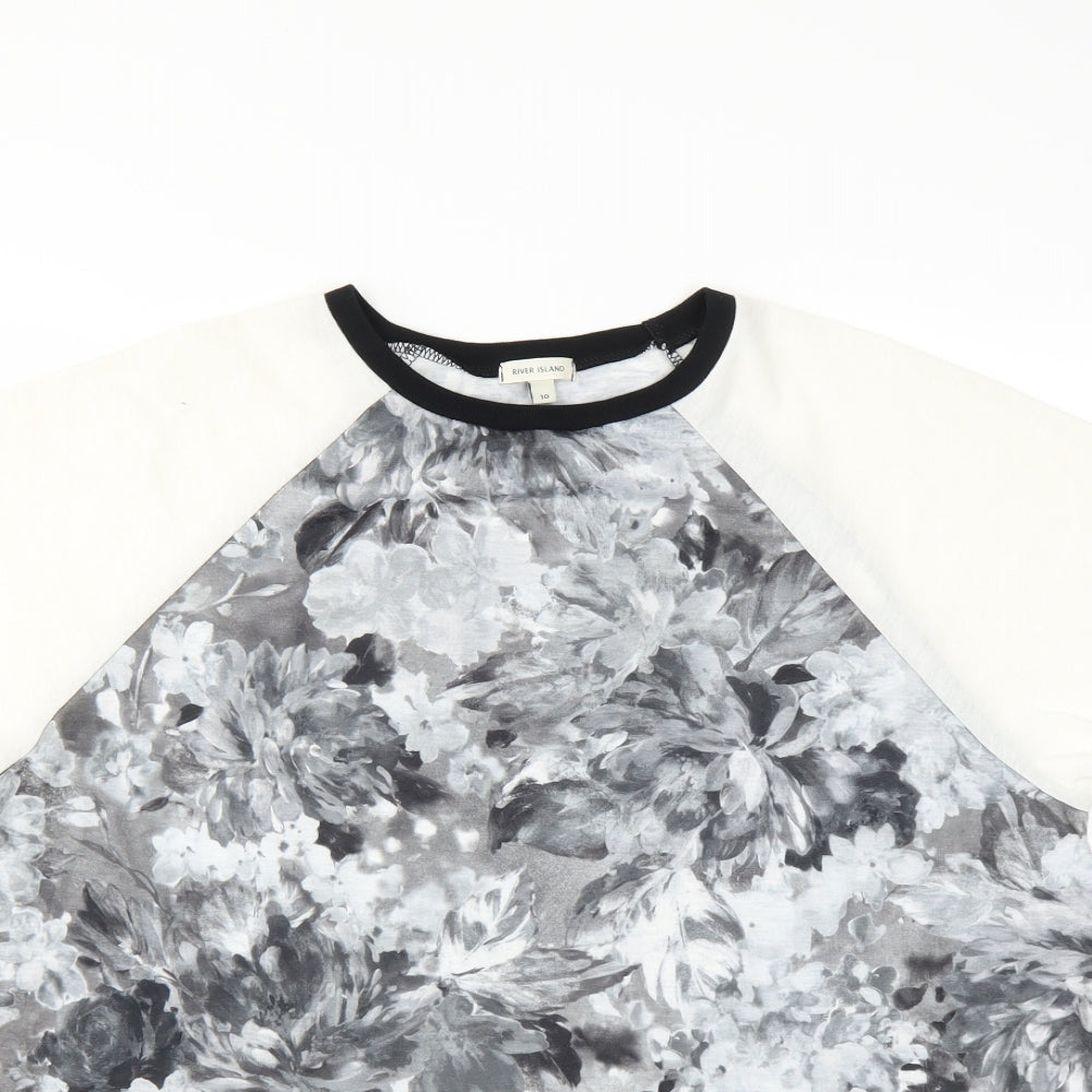 Womens Grey Floral Basic Blouse Size 10 - open sides