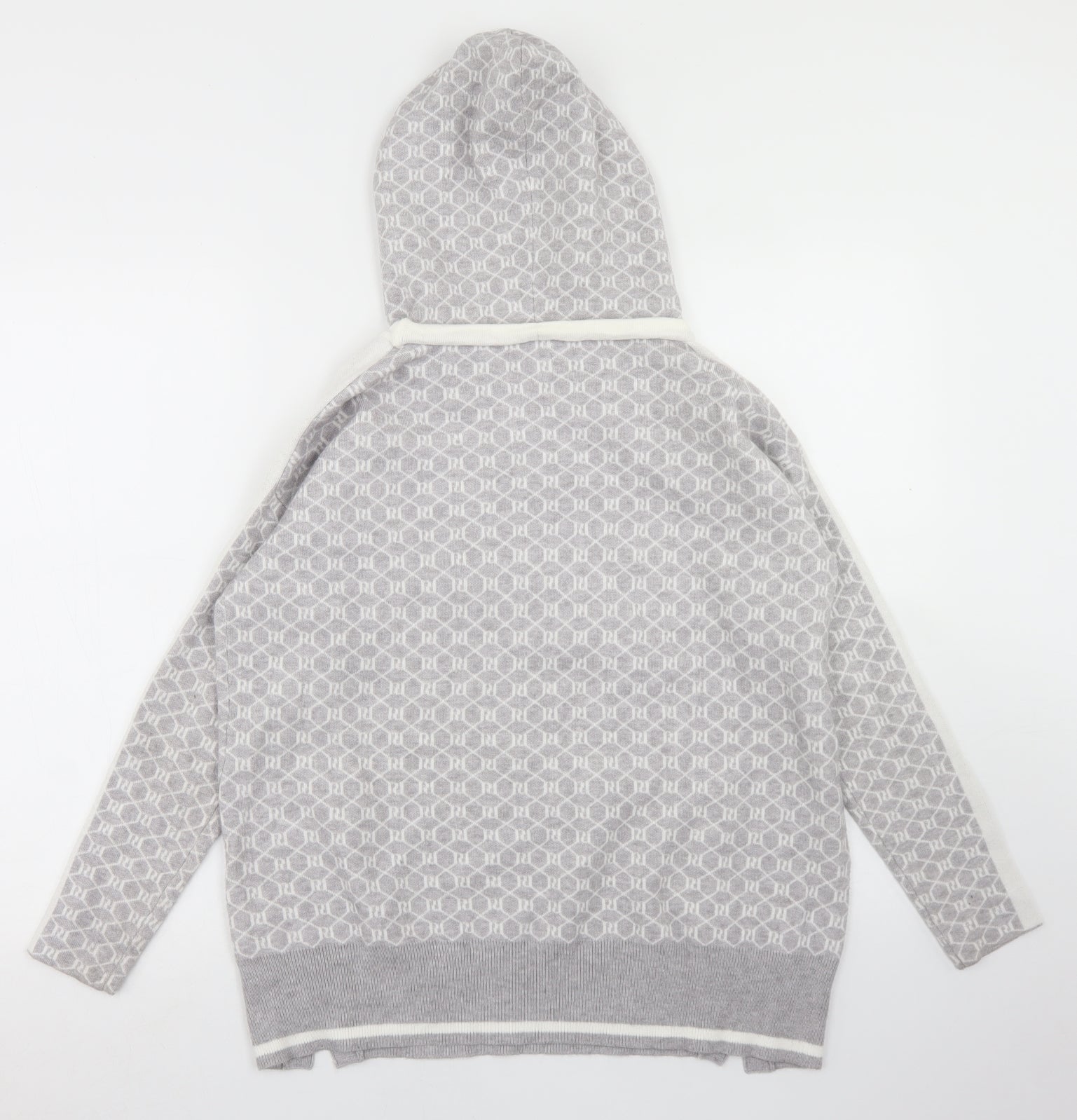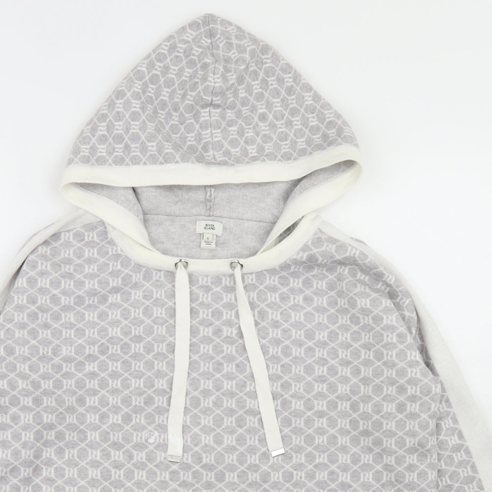 Womens Grey Geometric Viscose Pullover Hoodie Size S