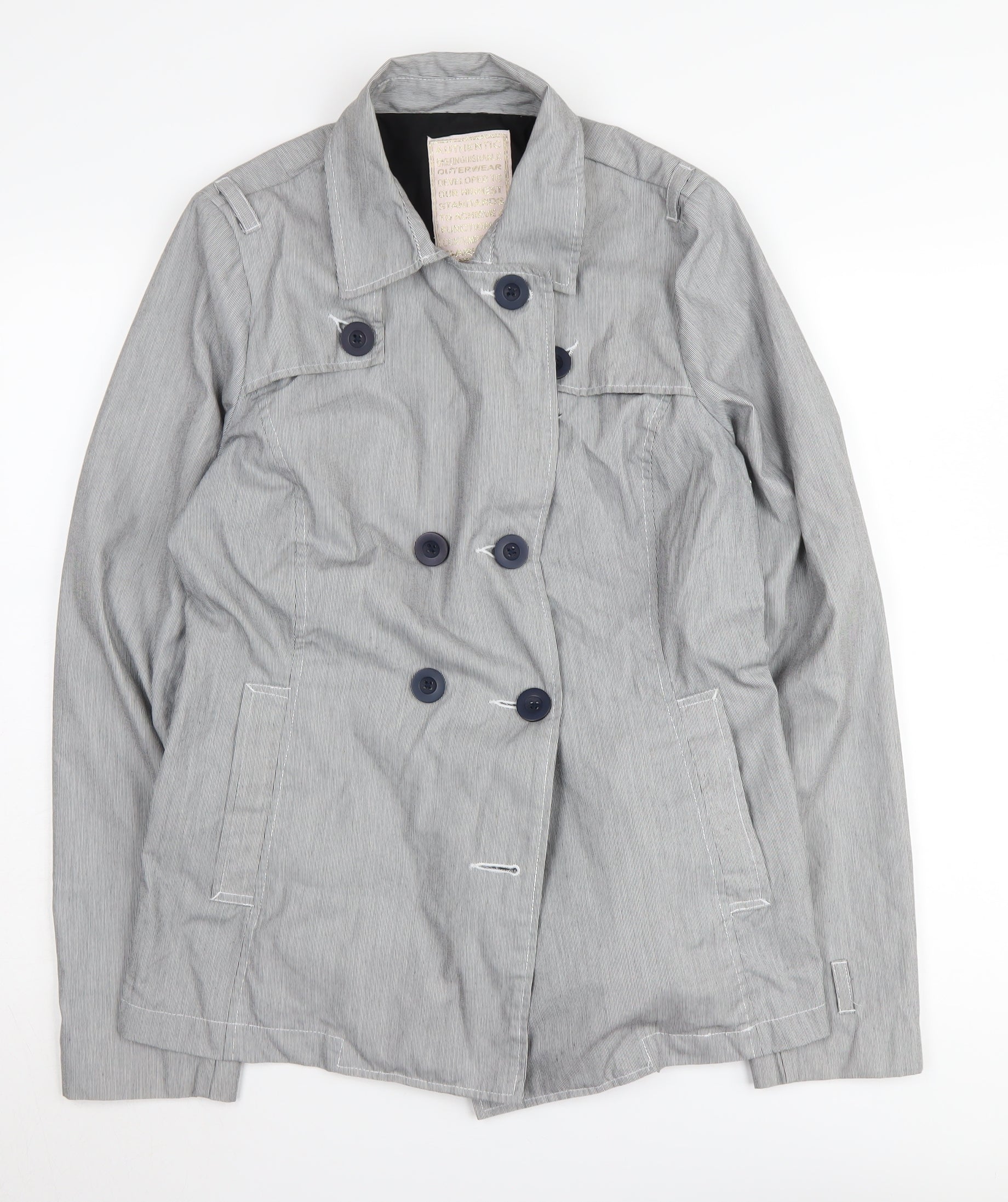 Elevate your wardrobe with this classic River Island Women’s Grey Pea Coat, perfect for both spring and autumn outings. Crafted from a blend of 64% polyester and 36% cotton, this stylish mid-length jacket ensures comfort and durability. The timeless double-breasted design with button accents not only provides a chic and sophisticated look but also adds a layer of warmth, making it ideal for casual occasions. The elegant grey colour brings versatility, allowing it to blend seamlessly with various outfits. Designed for a regular fit, the coat features long sleeves and a comfortable silhouette, ensuring you look your best while feeling relaxed. Embrace the classic theme and stylish design that River Island is renowned for. Whether you’re heading out for a casual day with friends or a leisurely stroll through the city, this jacket complements a variety of settings. The excellent condition assures that it will be a treasured piece in your collection for years to come. Don’t miss out on the chance to own this must-have wardrobe staple.