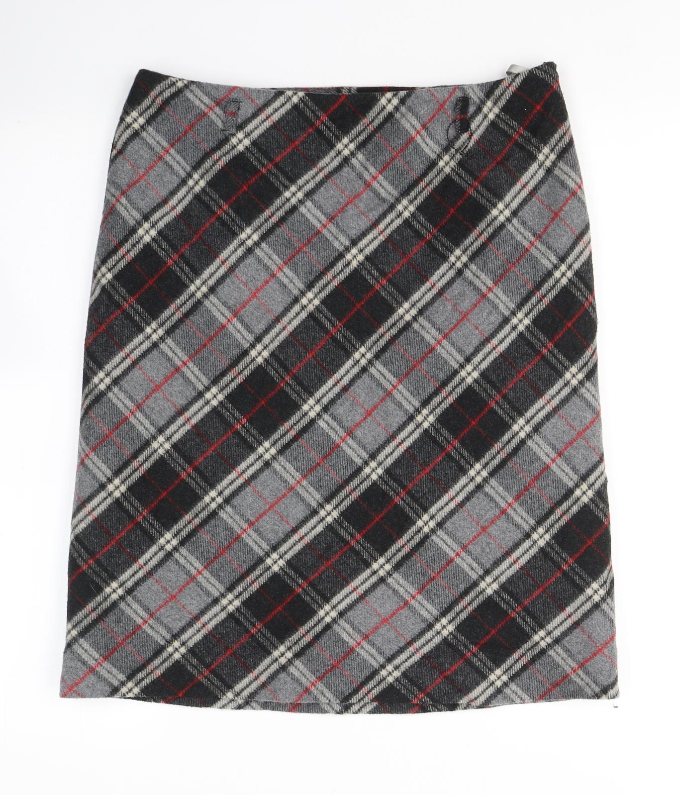 Womens Grey Plaid Polyester A-Line Skirt Size 10 Zip