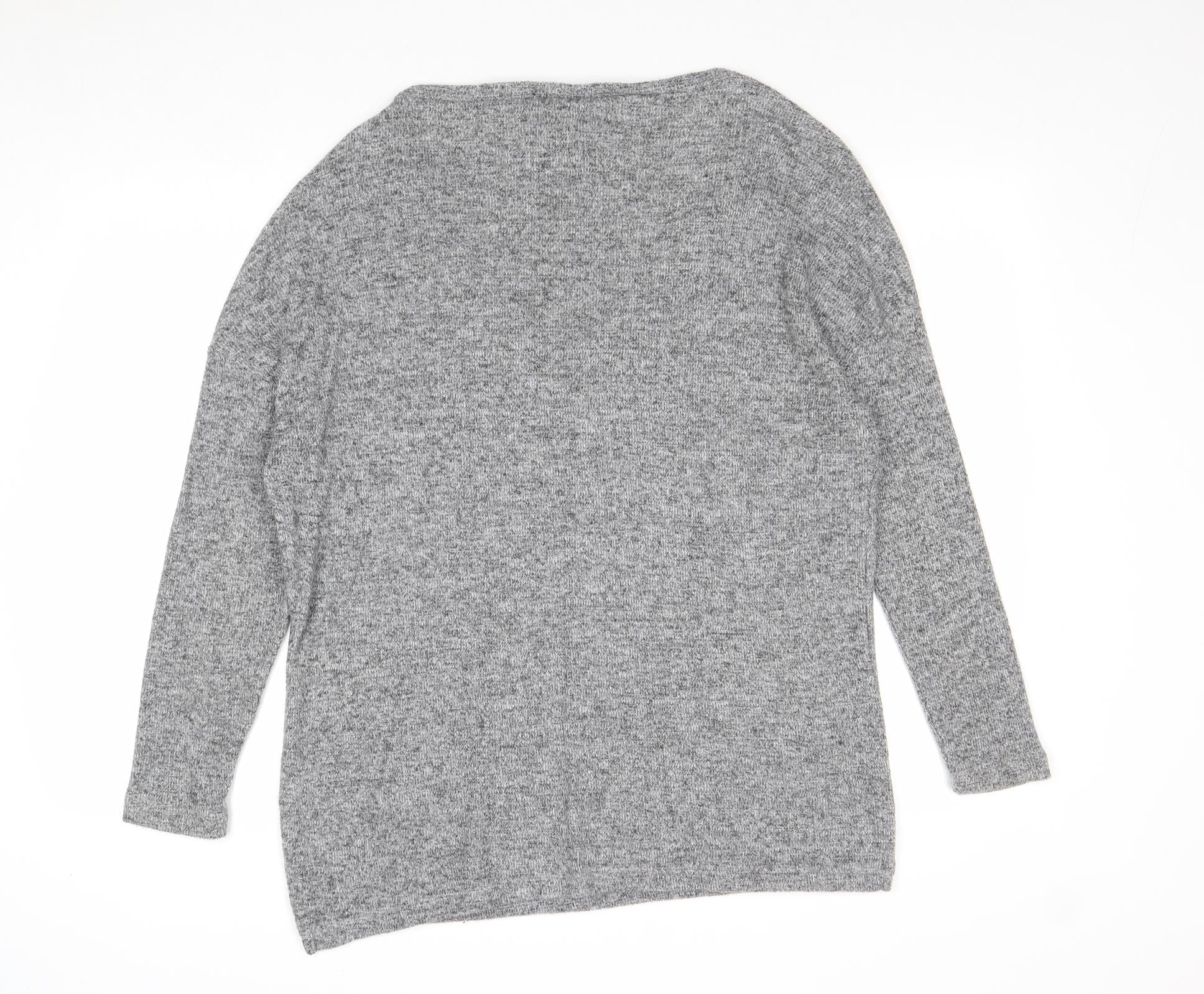 Womens Grey V-Neck Polyester Pullover Jumper Size 14 - Lace Detail
