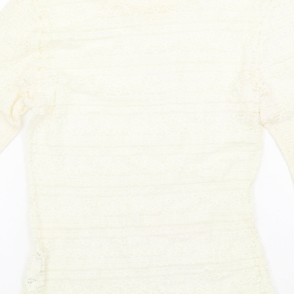 Womens Ivory Geometric Polyamide Basic Blouse Size 10 Round Neck - Lace