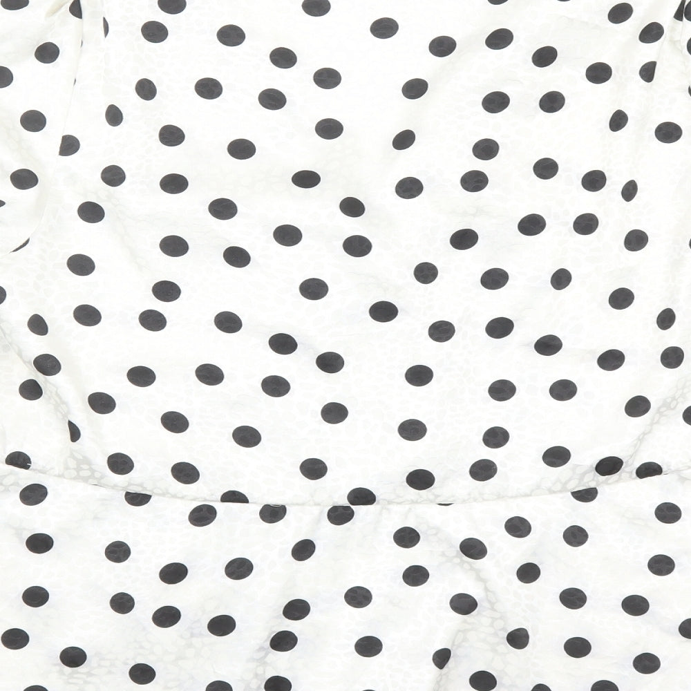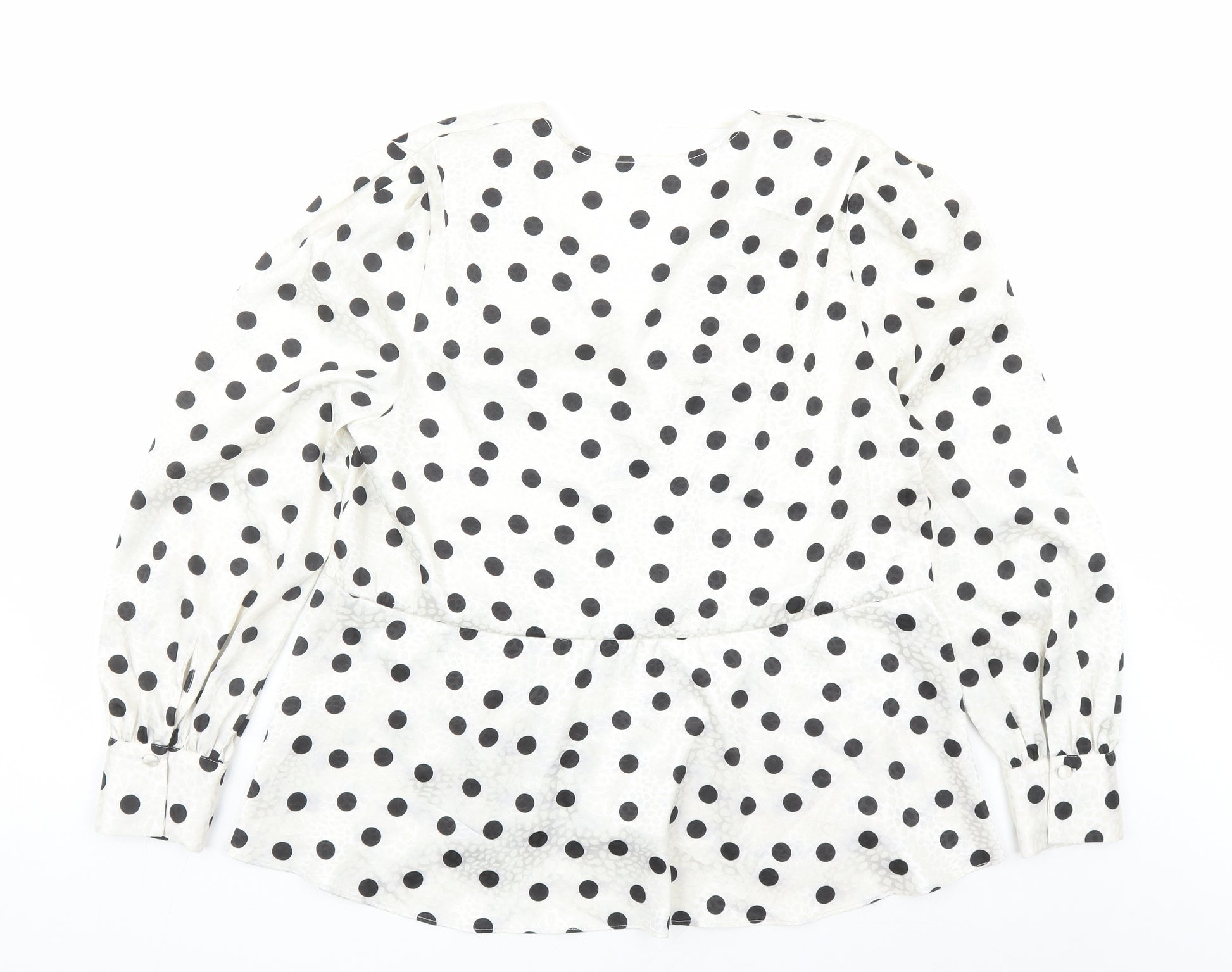 Womens Ivory Polka Dot Polyester Wrap Blouse Size 16 V-Neck