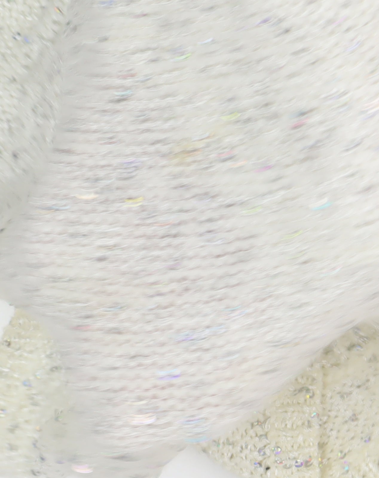 Elevate your wardrobe with this sparkling River Island tank top in a classic ivory shade. Perfect for women seeking a chic look, this sleeveless top features a scoop neckline and is adorned with beautiful sequins for a touch of glamour. Made from a comfortable blend of acrylic and polyester, this knit fabric ensures a regular fit that's both stylish and breathable, ideal for spring and summer occasions. It pairs wonderfully with both casual and more formal attire, making it a versatile choice for party or cocktail settings. Despite being pre-loved, it's in excellent condition with only slight wear visible, offering a dazzling option for your next event. Hand wash recommended to maintain its graceful allure.
