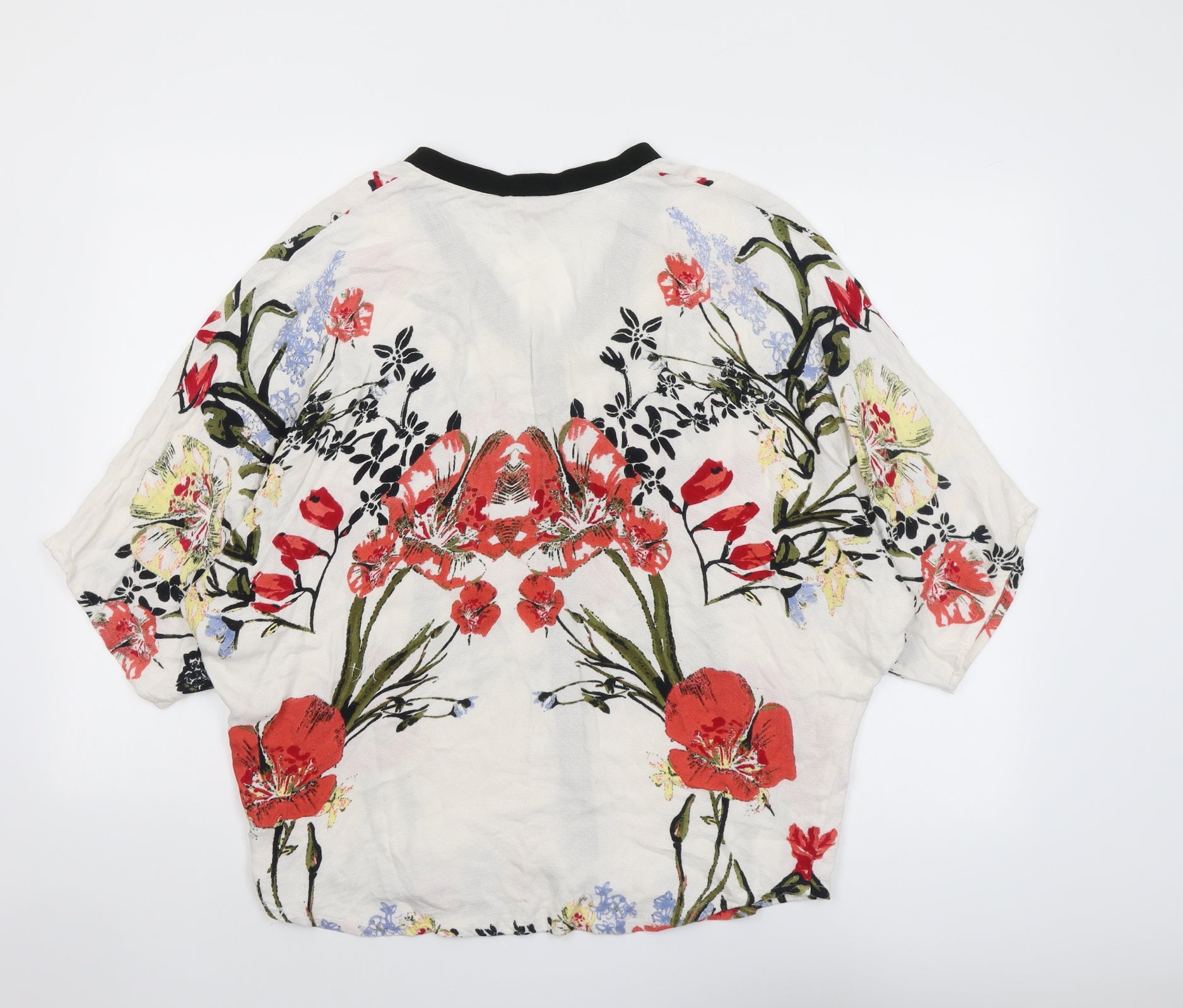 Womens Multicoloured Floral Viscose Basic Blouse Size S Round Neck