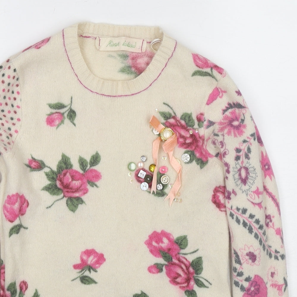 Womens Multicoloured Round Neck Floral Wool Pullover Jumper Size 8