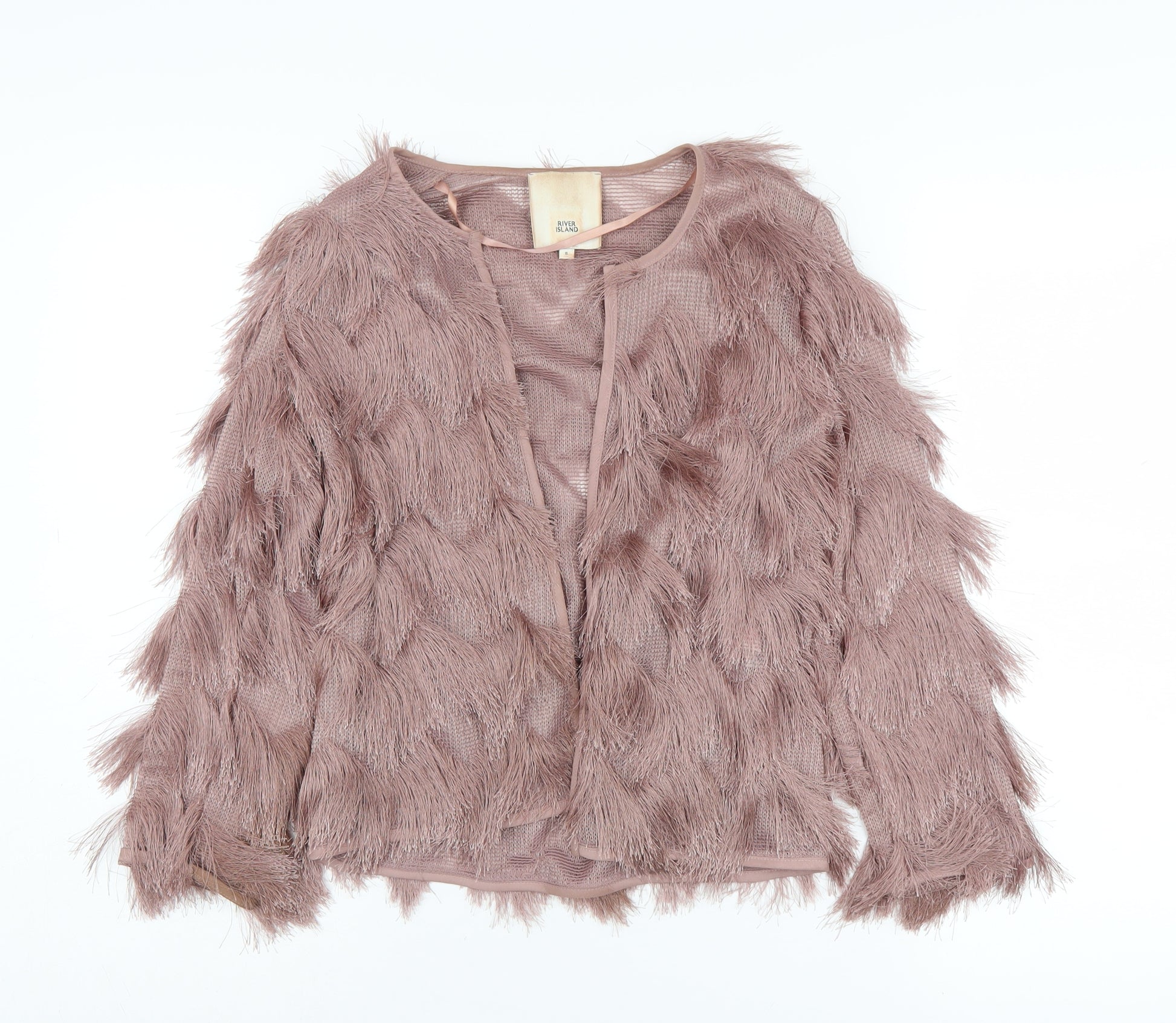 Embrace chic and cosy vibes with this River Island Women's Pink Cardigan in a versatile size 10. With its elegant round neck and long sleeves, it is perfect for layering during the breezy days of spring and autumn. Crafted with a soft polyester blend and elastane, this cardigan offers a lightweight feel without compromising on style. The knit fabric's open style design adds a trendy touch, making it ideal for casual outings or laid-back gatherings. Whether paired with jeans or a dress, this cardigan promises a comfortable and fashionable look that will have you returning season after season.