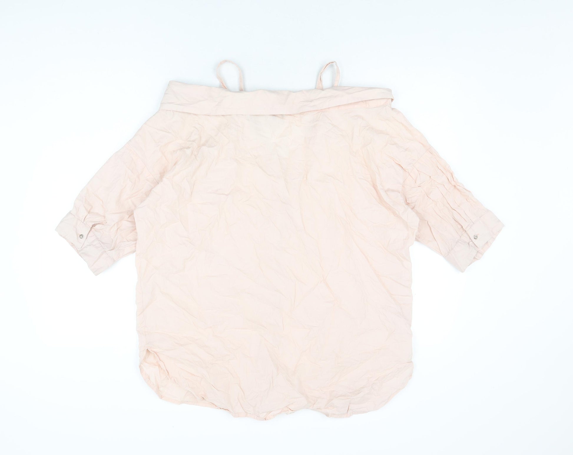 Womens Pink Cotton Basic Button-Up Size 12 Collared