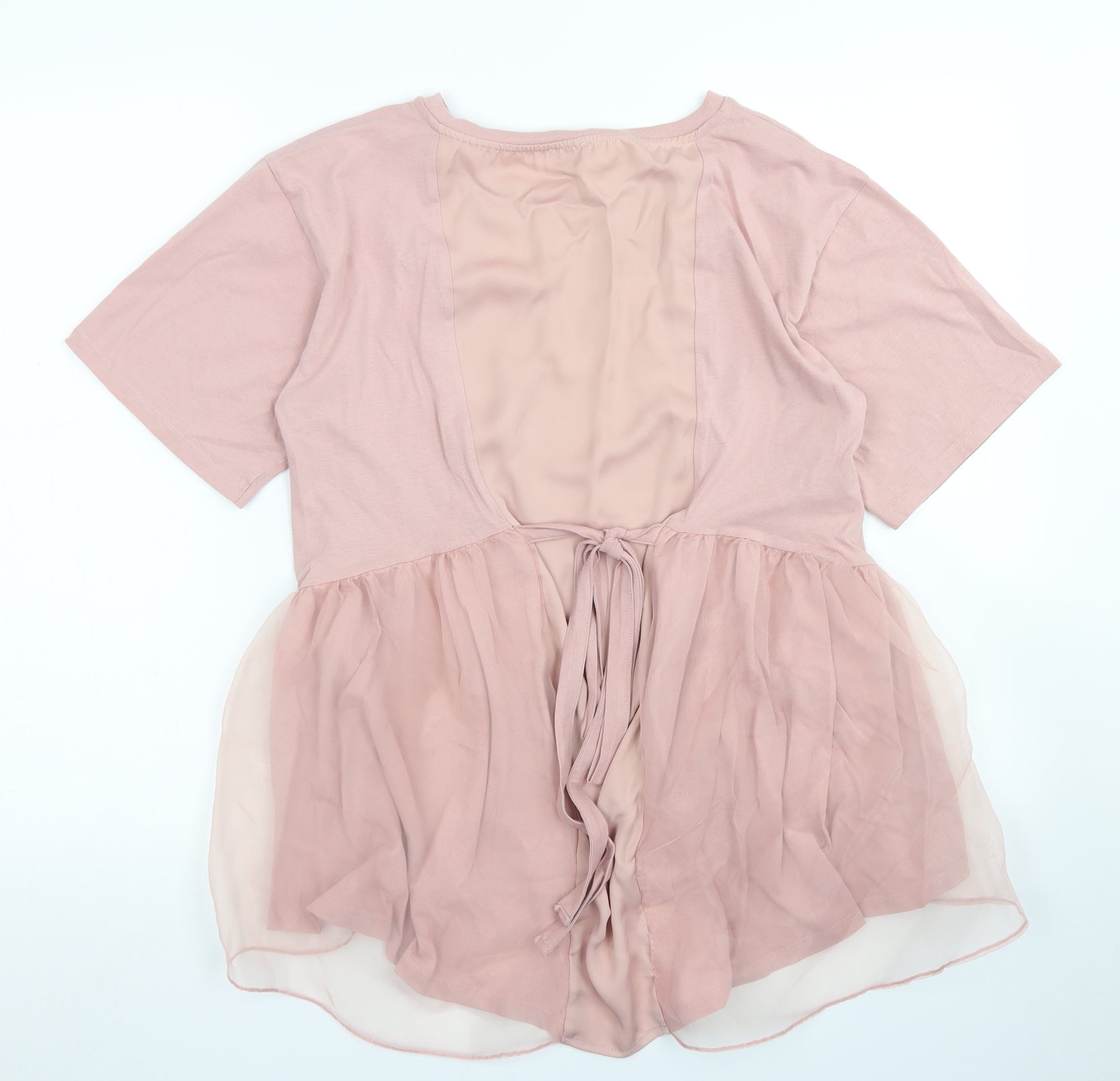 Womens Pink Cotton Basic T-Shirt Size 14 Crew Neck - Tulle Back